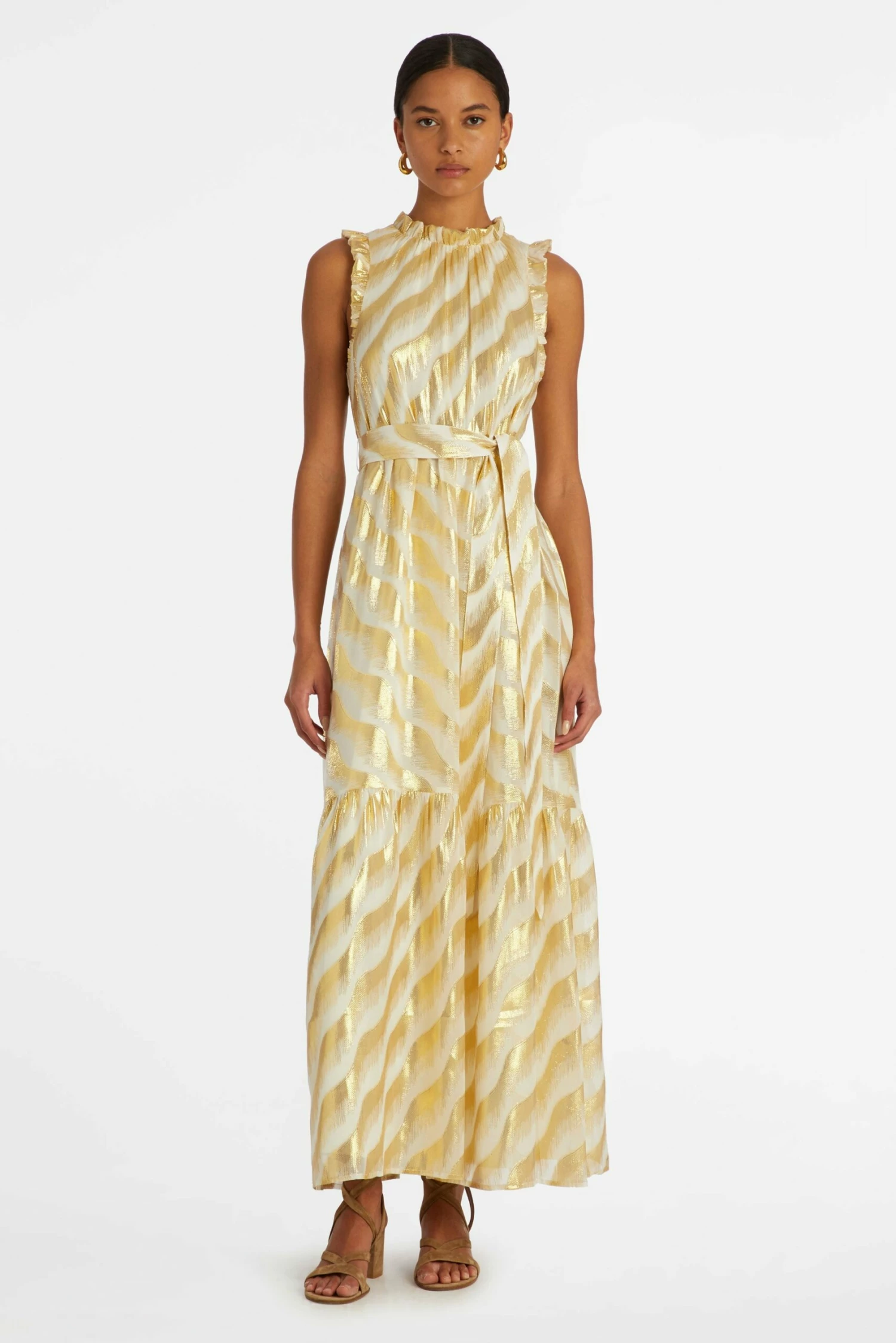 If anything could make us bigger Alice fan girls, it’s this new Golden Wave design, which features sheer chiffon fabric in white and an undulating metallic and fringe pattern that transcends seasons for a year-round, party-ready look.