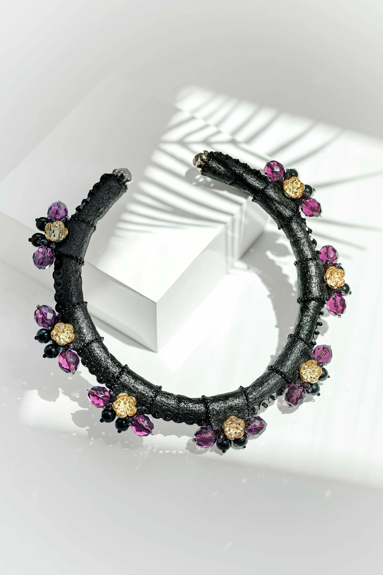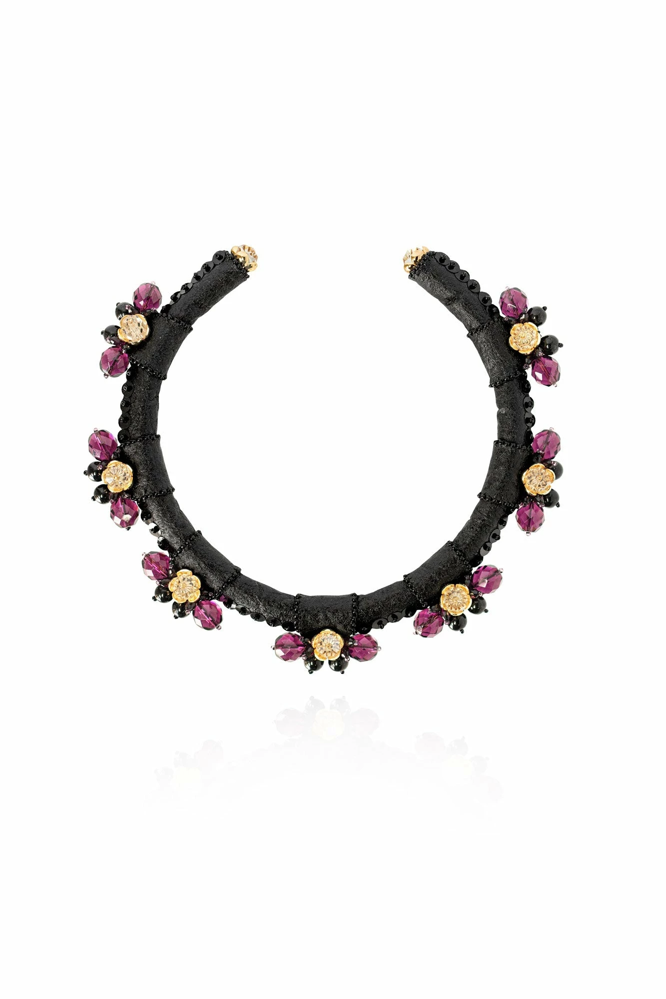 The Amelie Necklace is a kaleidoscopic array of crystals, glass beading and upcycled sequins, creating a radiant halo that rests upon your collarbones. Amelie is elaborately handcrafted to add an element of surprise to everyday wear, or emphasize your evening glam.