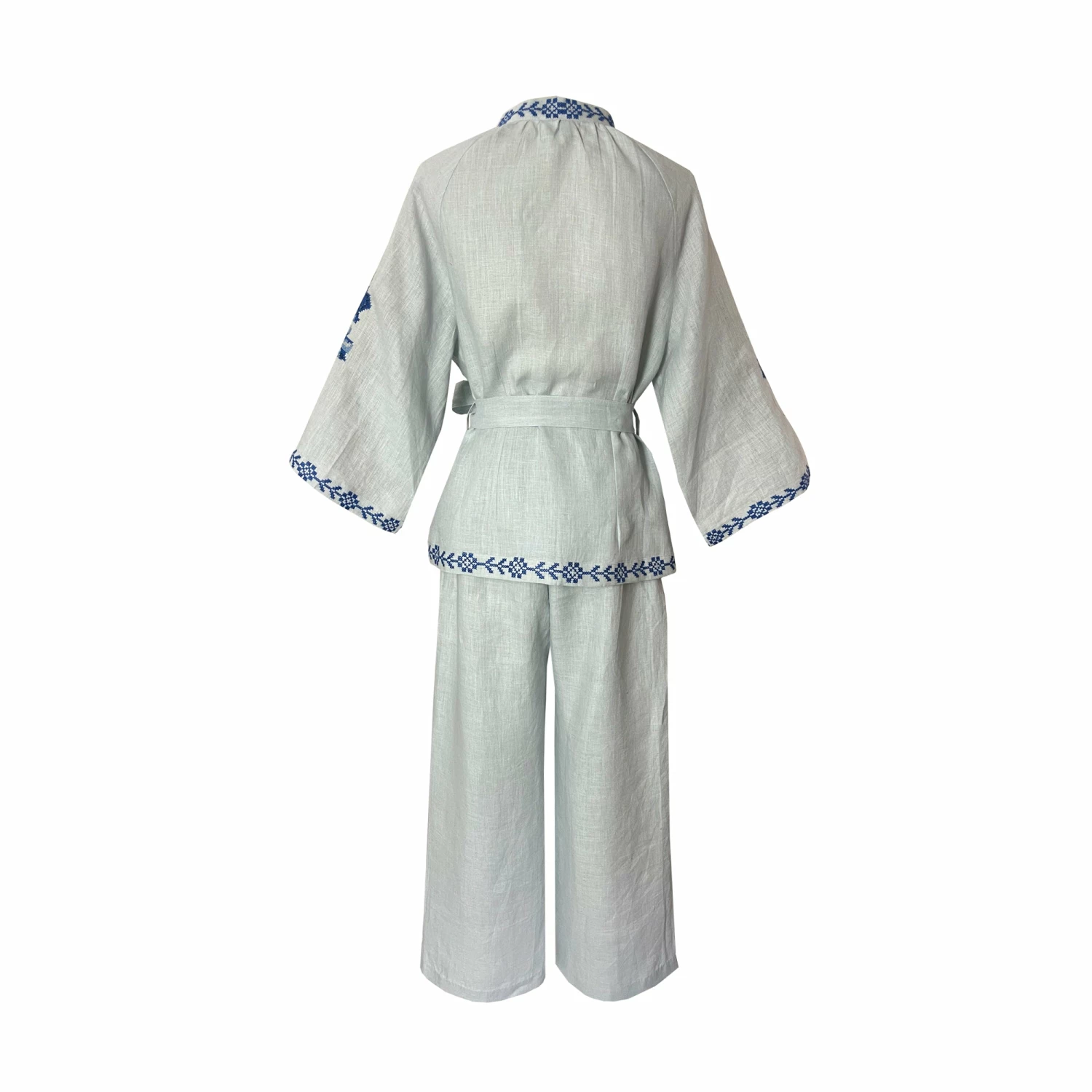 The Blue Set is made in baby blue linen from the South of India.