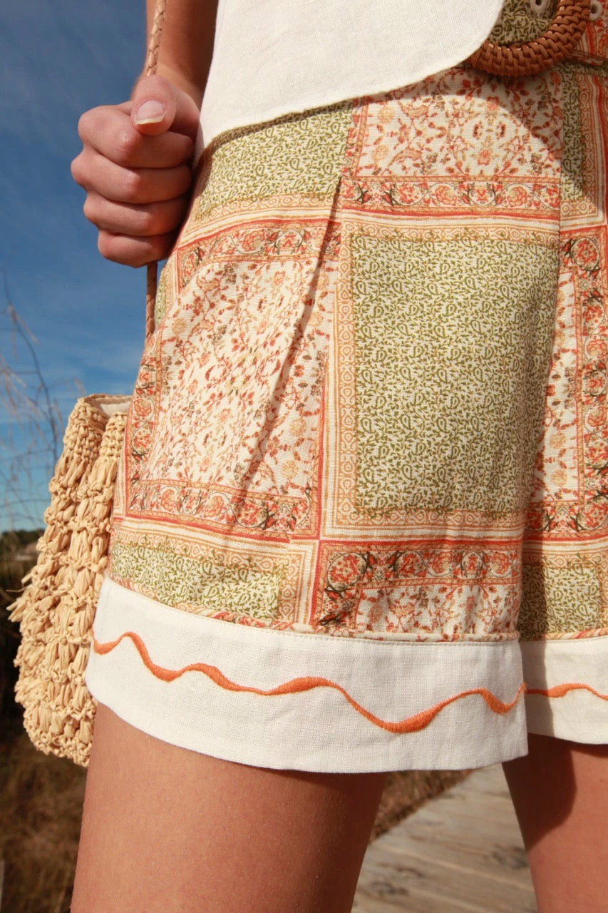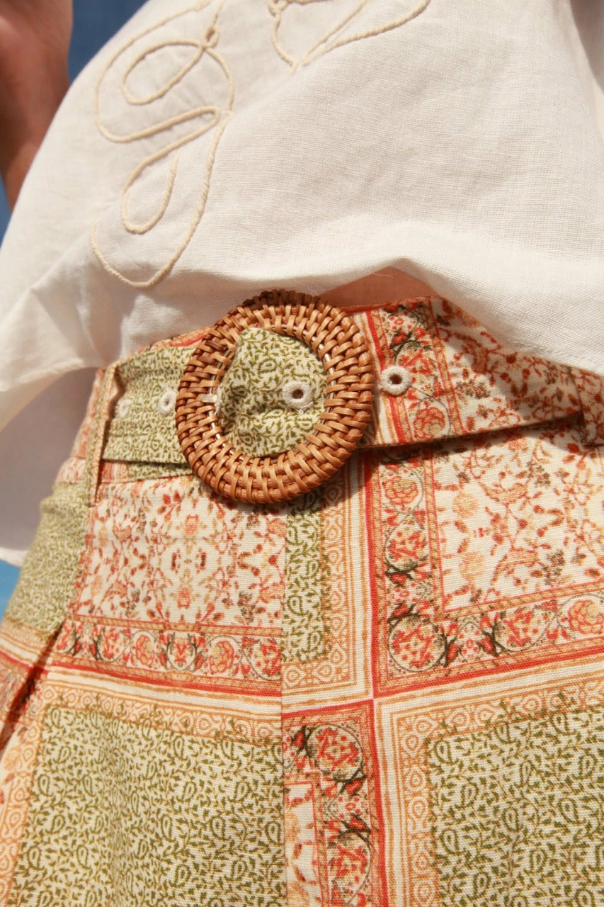 The Carly Linen Short is made of breathable linen fabric, featuring a natural rattan belt for a touch of summer style. This versatile piece pairs wonderfully with the Allison blouse from our spring collection for a stylish, timeless look.