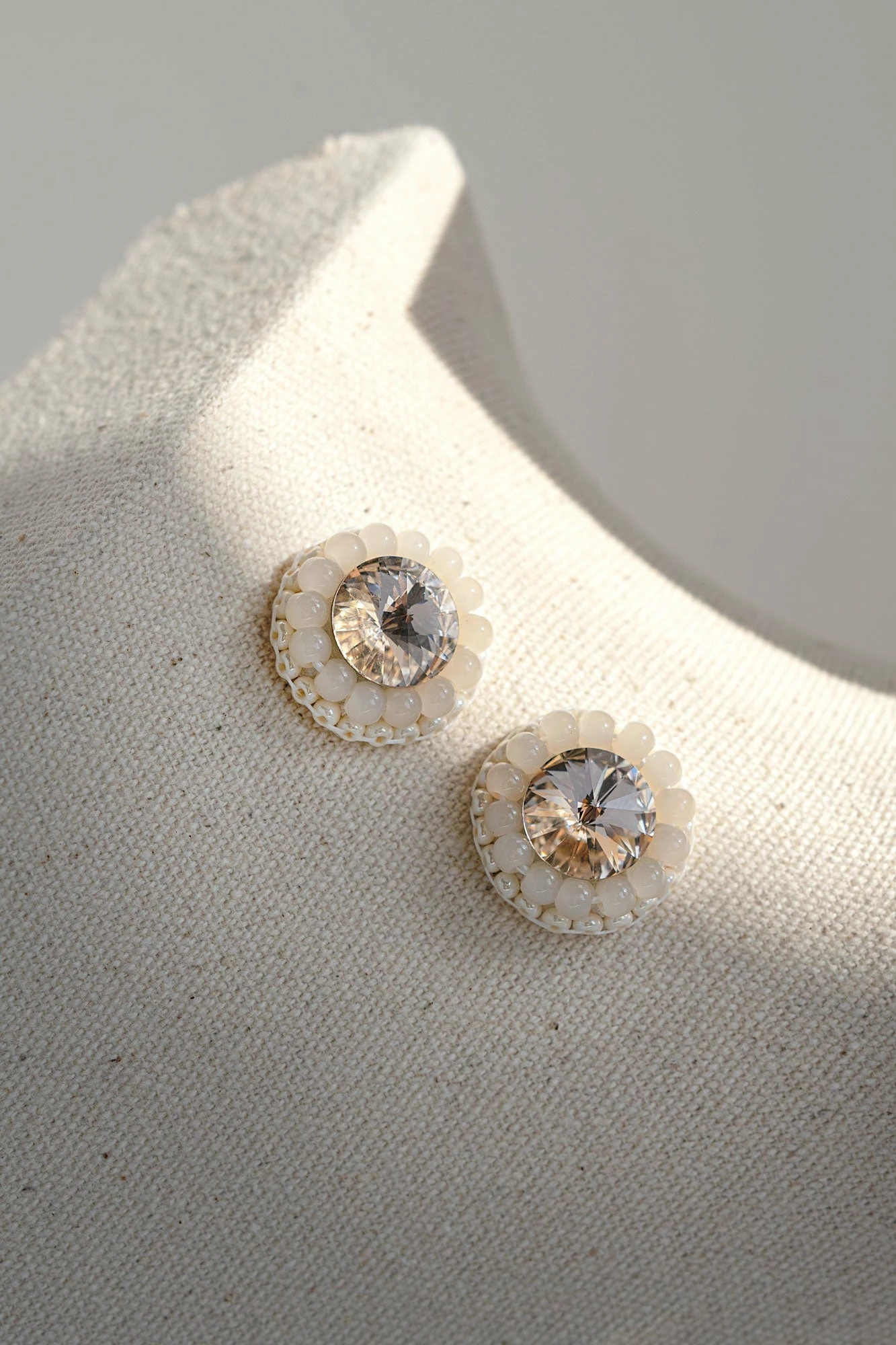 Simple, sweet, fun. Though she is a single post, Cleo Earrings make fantastic use of space with a finely faceted crystal rivoli center that bounces light beautifully between its many angles. All surrounded by the subtle glow of frosted beads. Some will see nature and call Cleo a flower. Others will cherish Cleo’s vintage appeal, like an inherited brooch or teacup saucer. Easygoing style and a rainbow of color choices make Cleo Earrings an instant mood-booster and closet must-have.