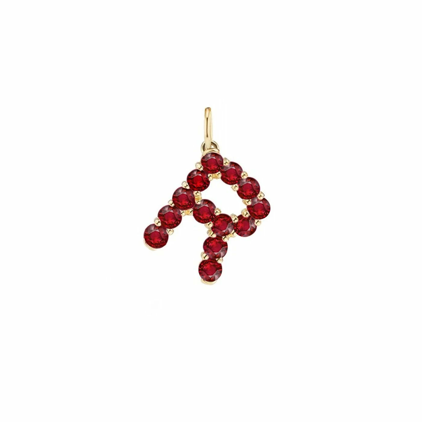 A pendant featuring the initial of your choice comprised of round Ruby Gemstones in a delicate 18k gold mounting with smooth beaded back.