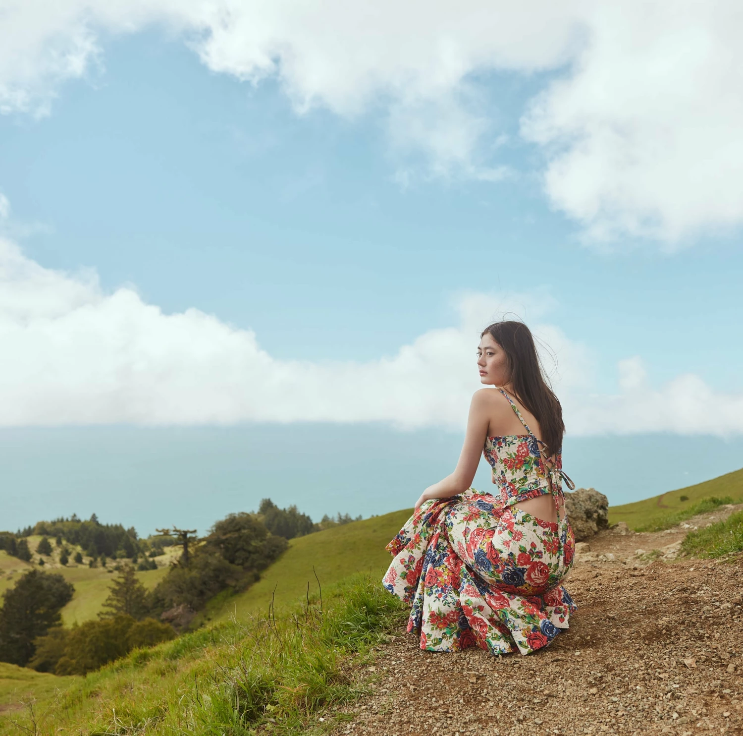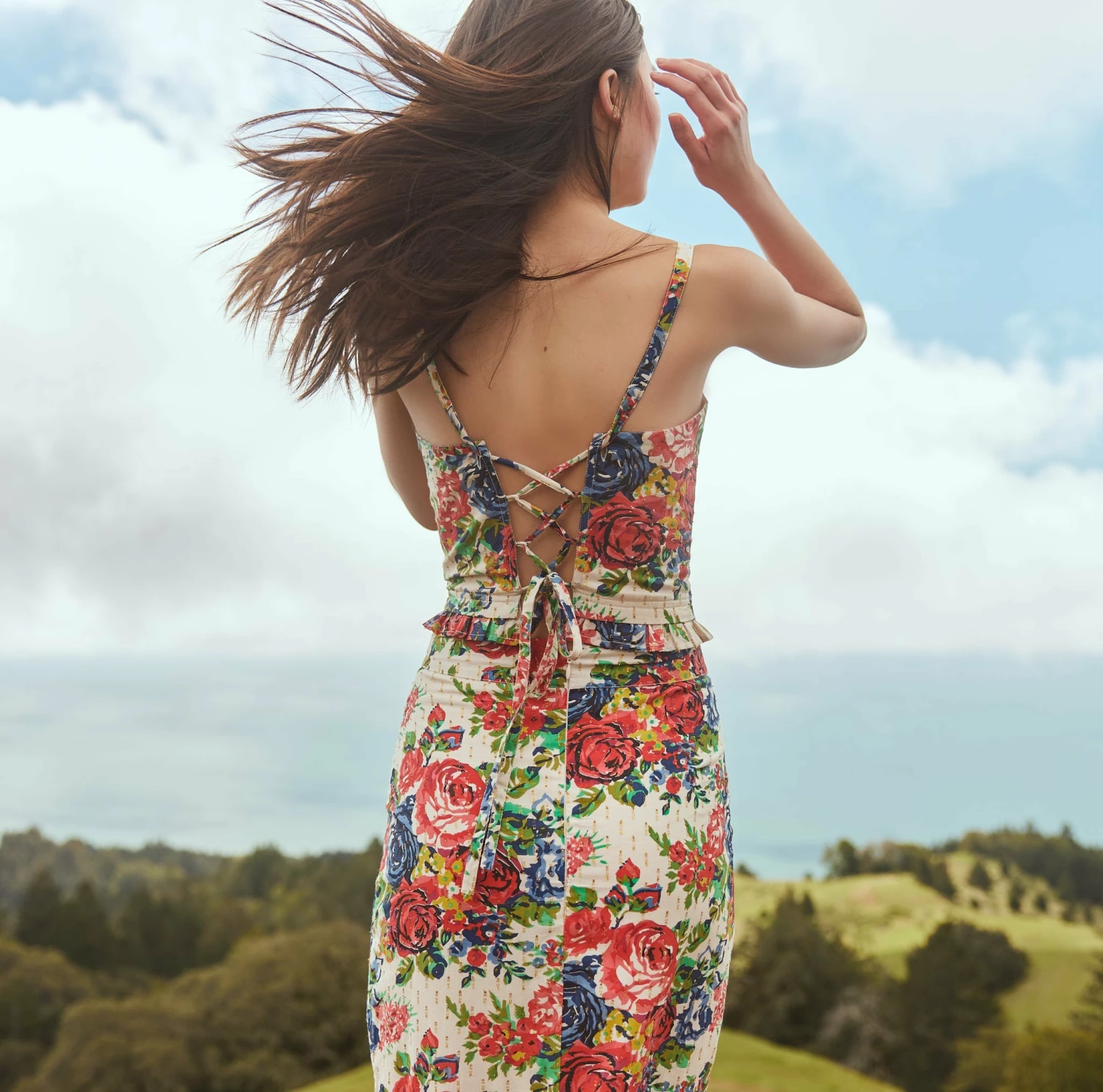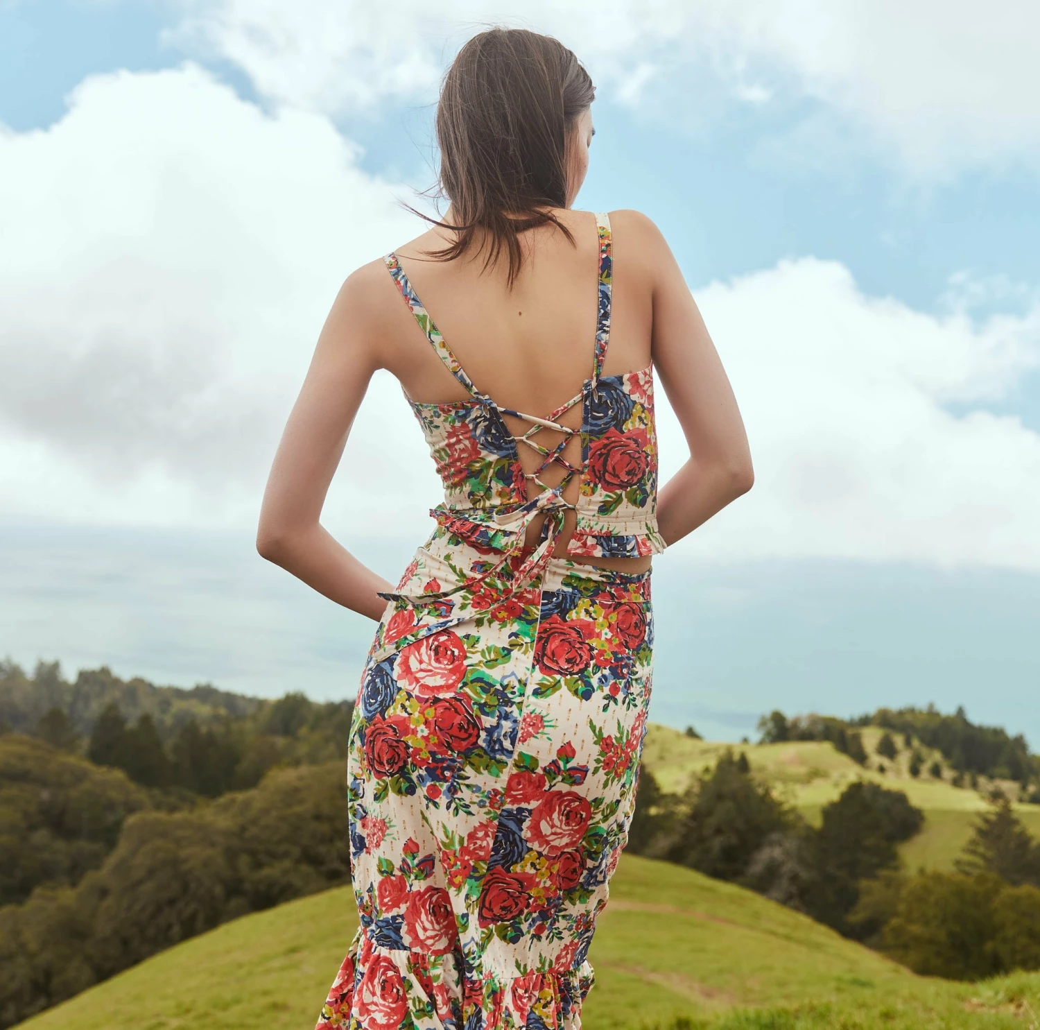 The Courtney is a playful top with ruffle details. It is fully adjustable with a tie back. A versatile, easy piece, Courtney can be paired with the coordinating Patsy Fluted Skirt, or dressed down with your favorite pair of jeans