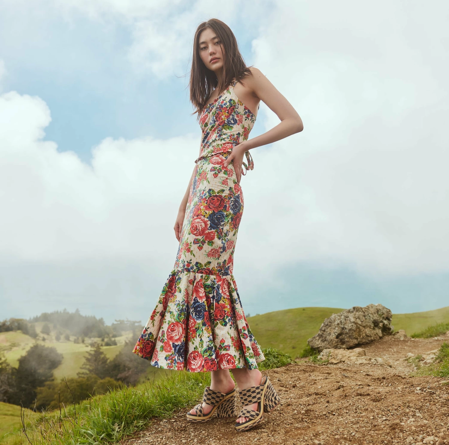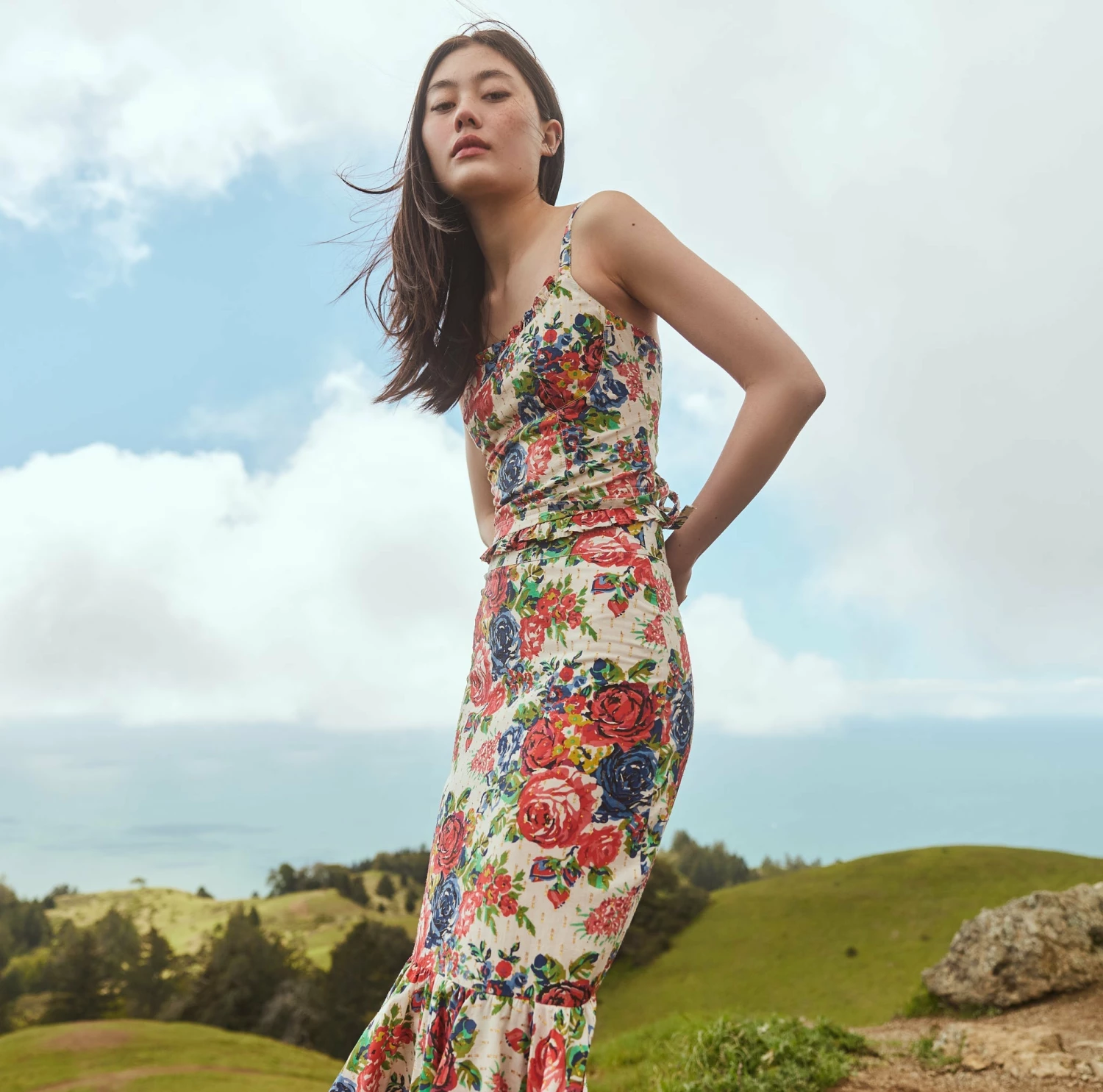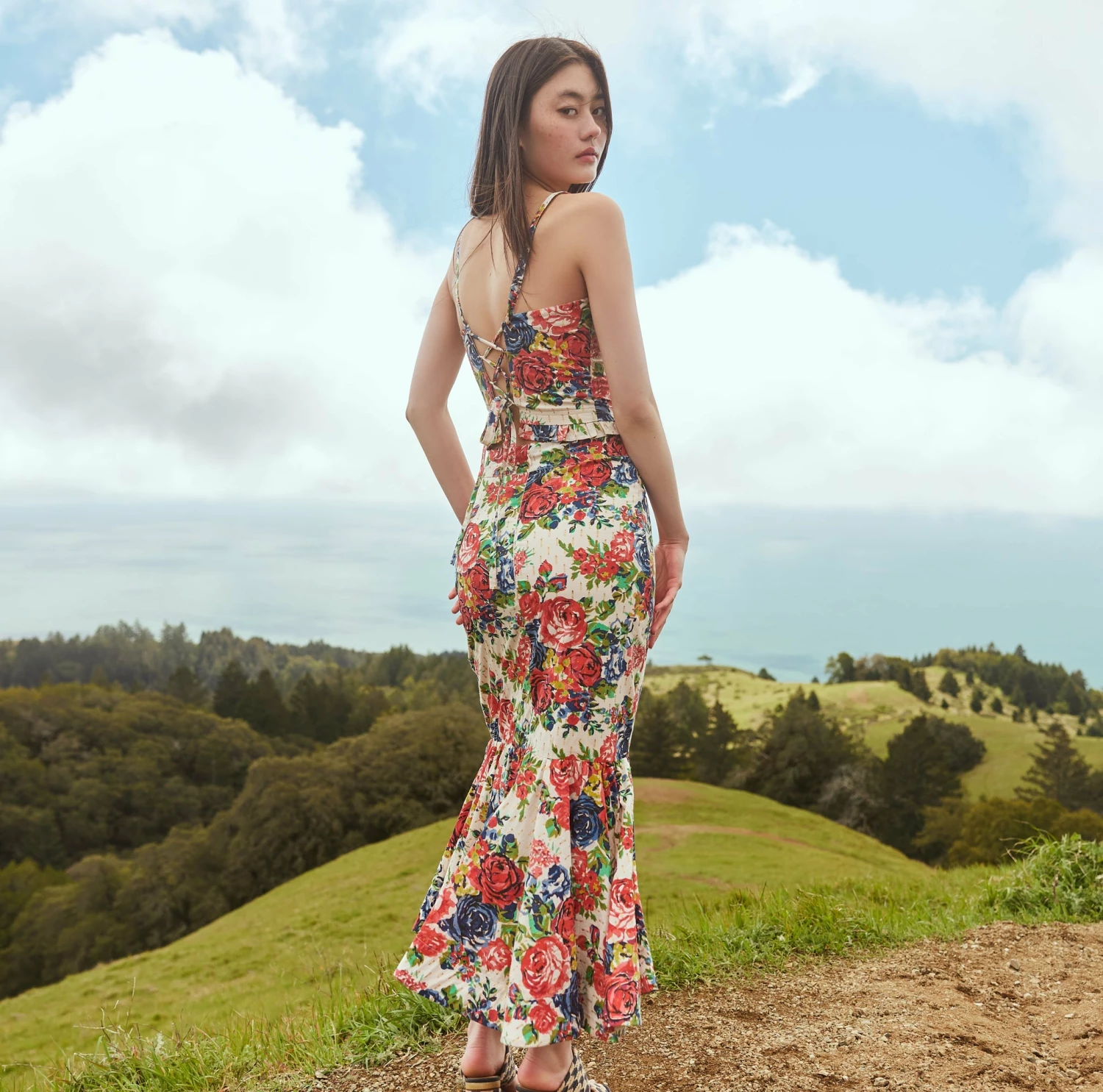 The Courtney is a playful top with ruffle details. It is fully adjustable with a tie back. A versatile, easy piece, Courtney can be paired with the coordinating Patsy Fluted Skirt, or dressed down with your favorite pair of jeans