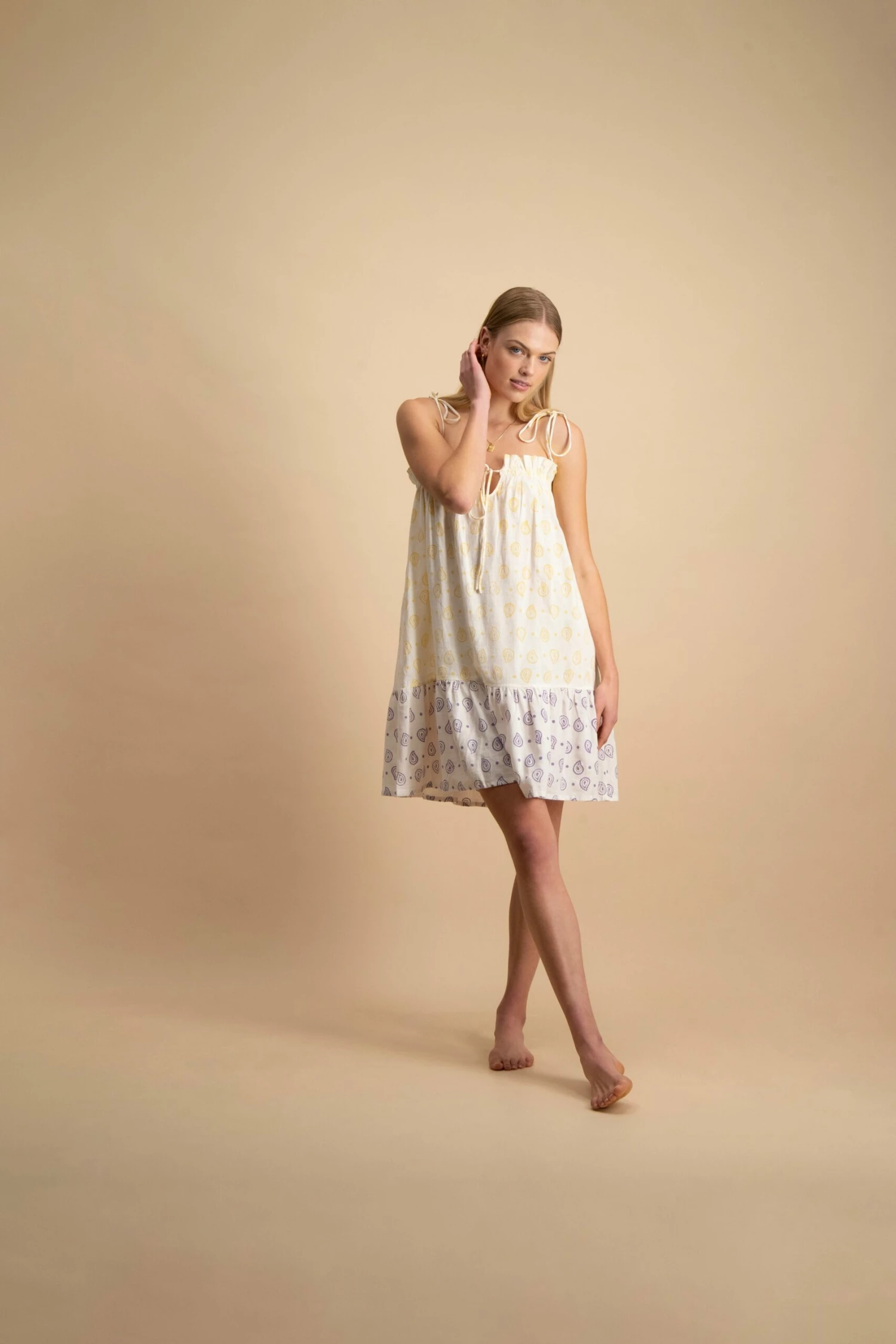 A lighthearted and lovely mini. Wear barefoot and carefree with little underneath.