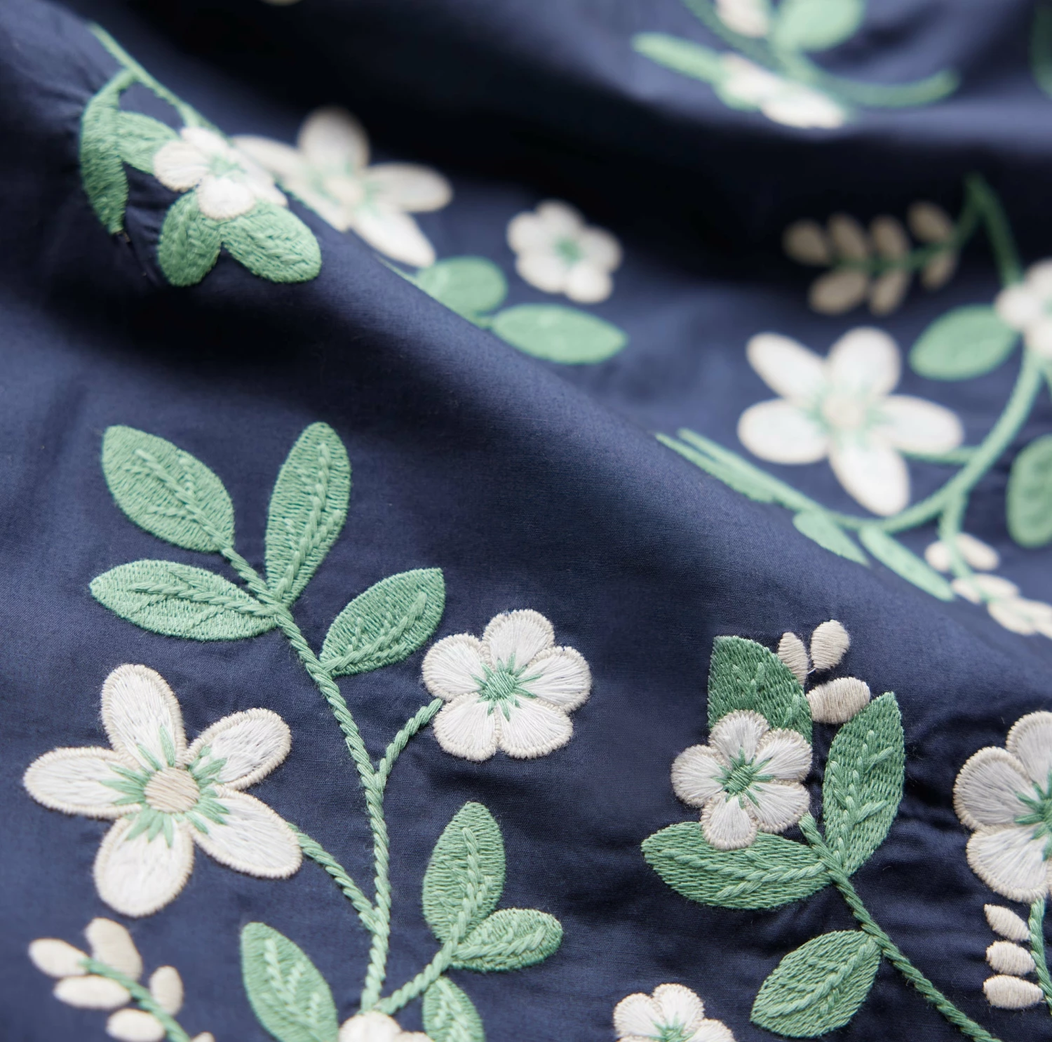 - Dark Blueberry/Ivory Ditsy Floral Embroidery