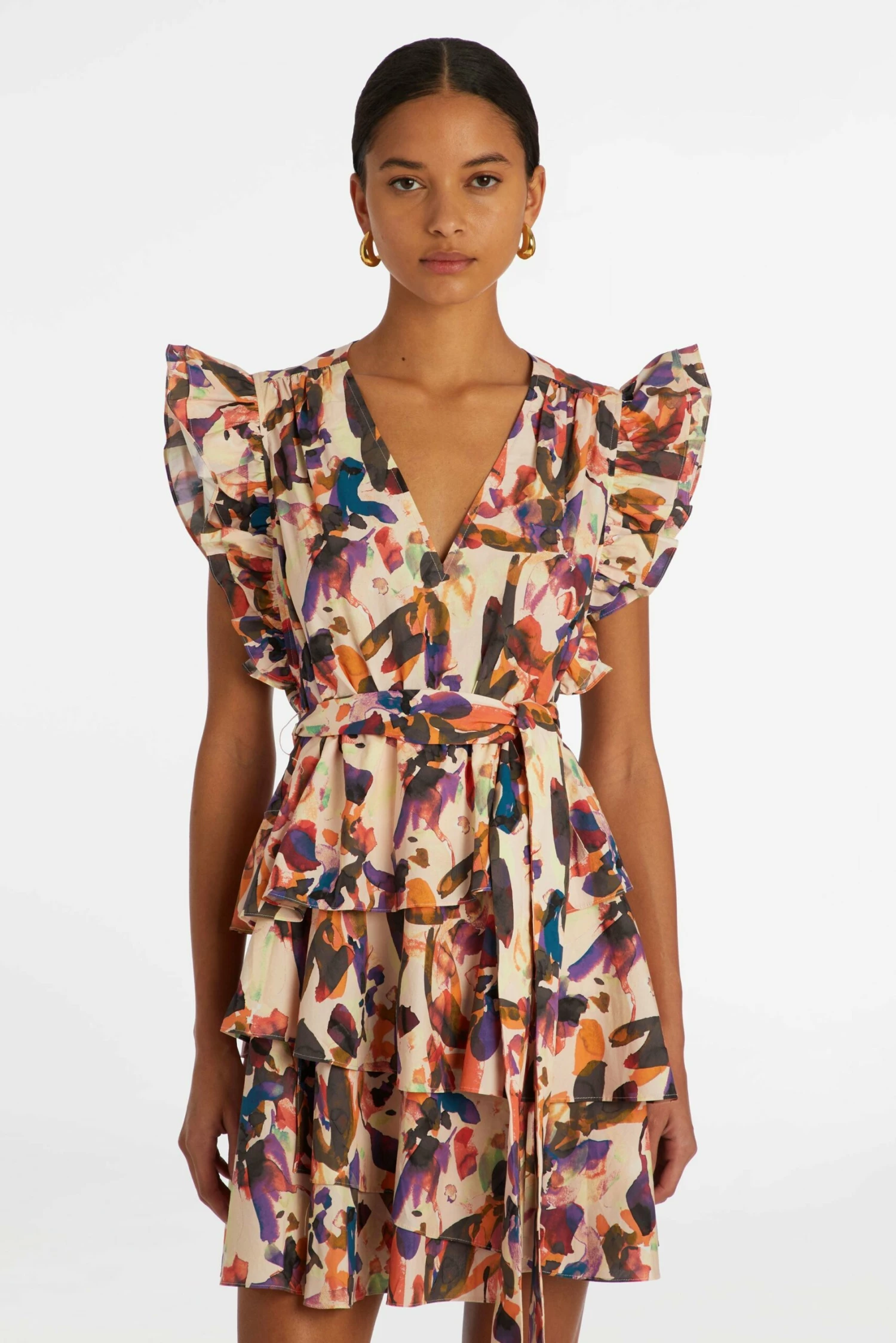 Short on time in the mornings? Meet Fiona, who proves a great dress can be the most effortless item in your wardrobe. This flattering slip-on style features an elastic waistband for comfort and shape while feminine details like wide flutter sleeves, an optional tie belt, and an asymmetric tiered skirt add polish. Best of all, our colorful yet grounded Petaline print bridges the gap between late summer and early fall. Layer with our Maeve moto jacket as temps drop.
