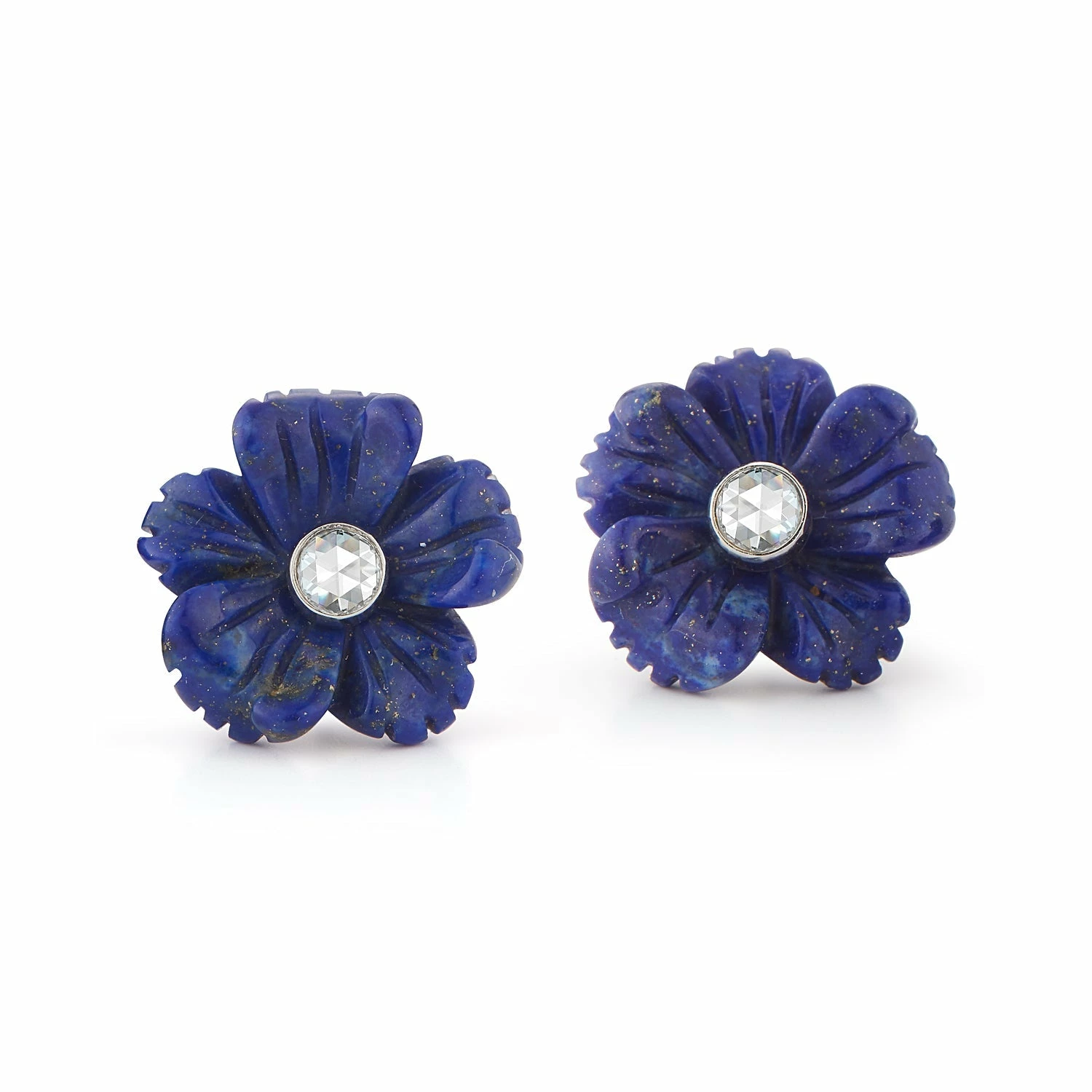 Wear these petite rose cut diamond studs on their own or make a statement by adding the beautiful carved lapis jacket. Switch out the studs for a look of your own!