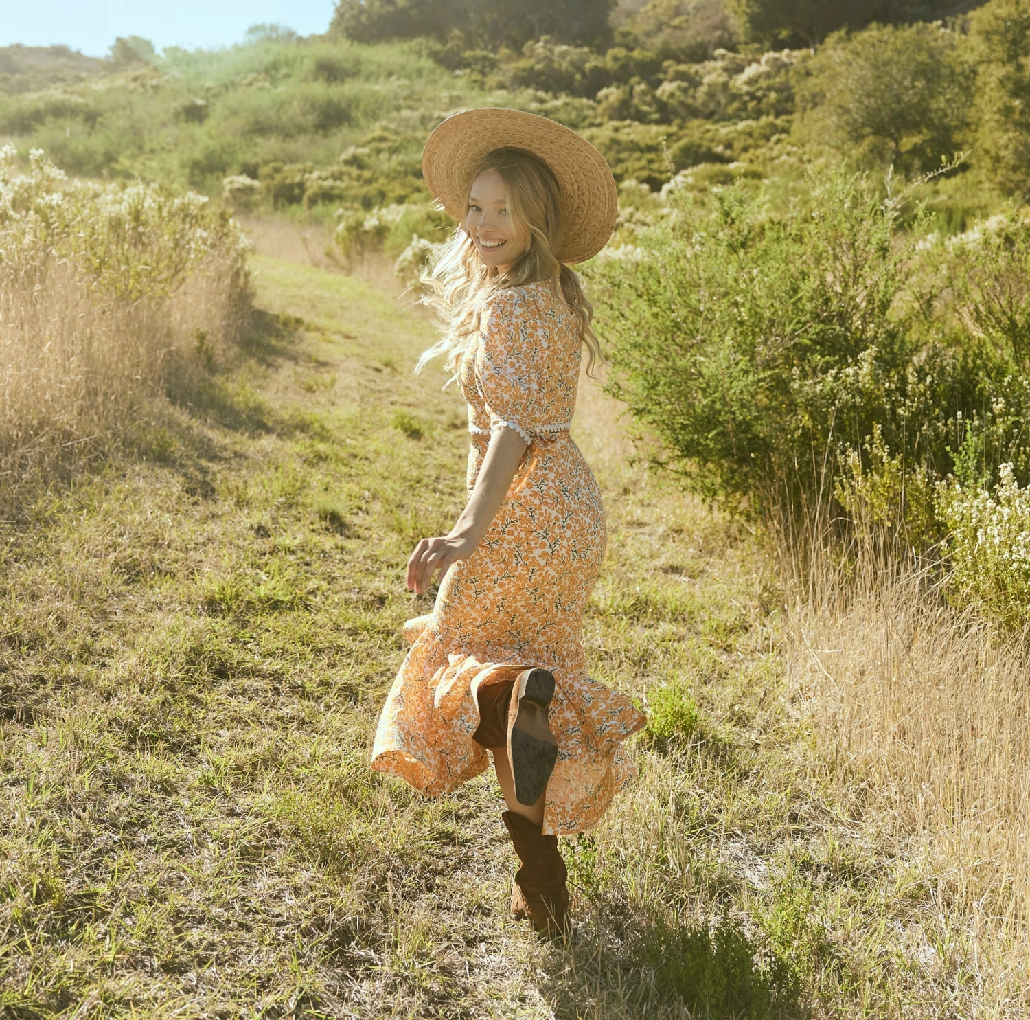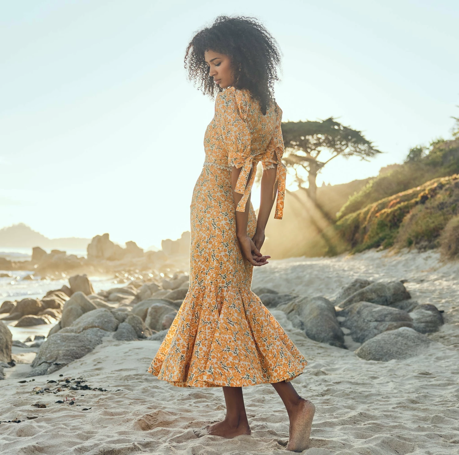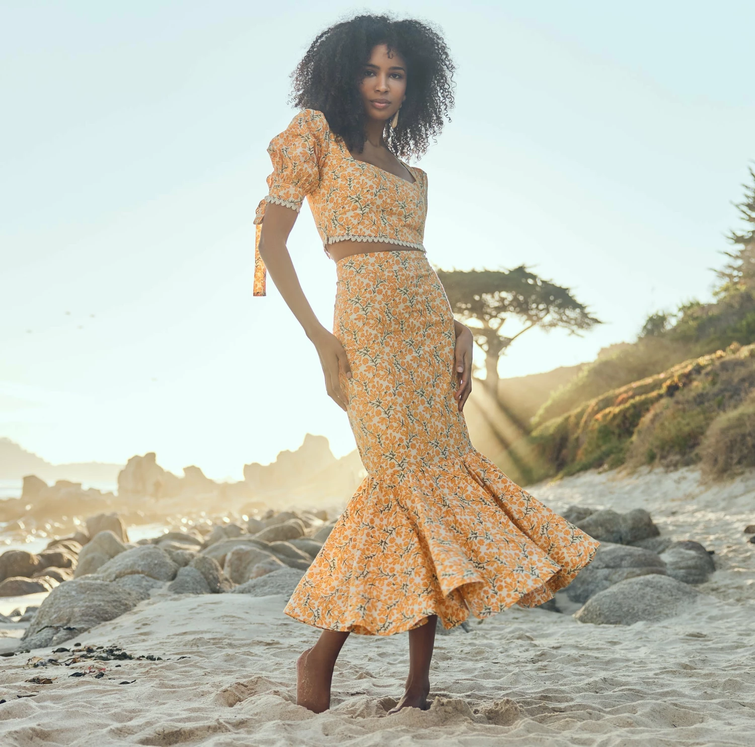 - Ivory/Clementine Floral print