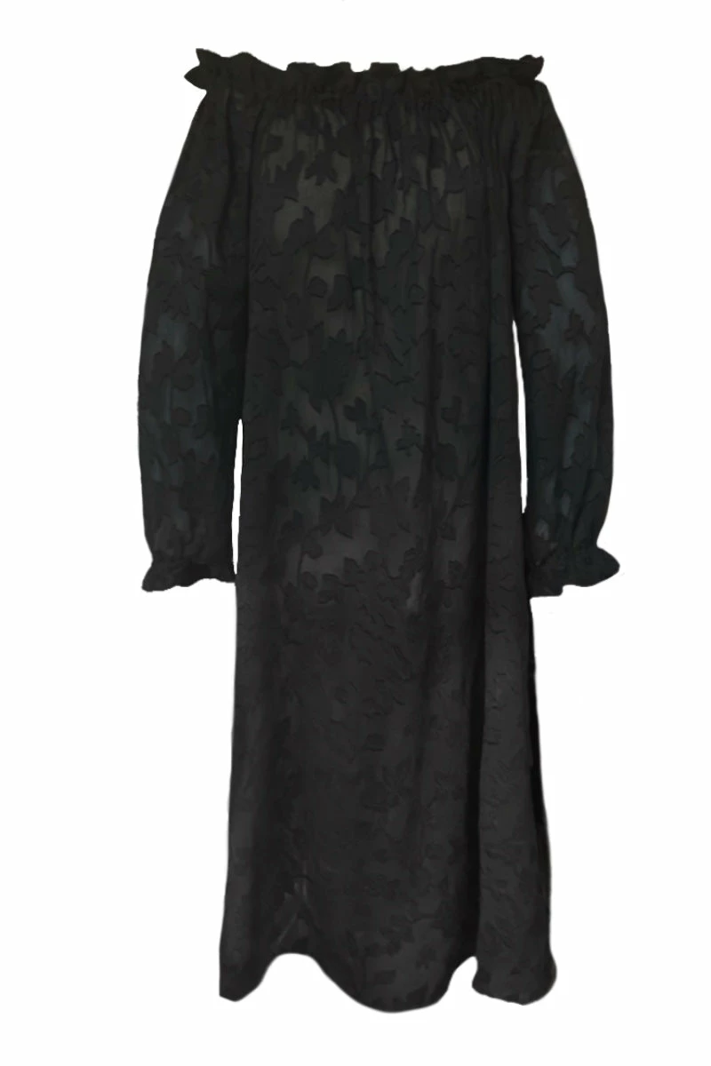 - Inner neck and wrist ruffles lined with black cotton ribbon