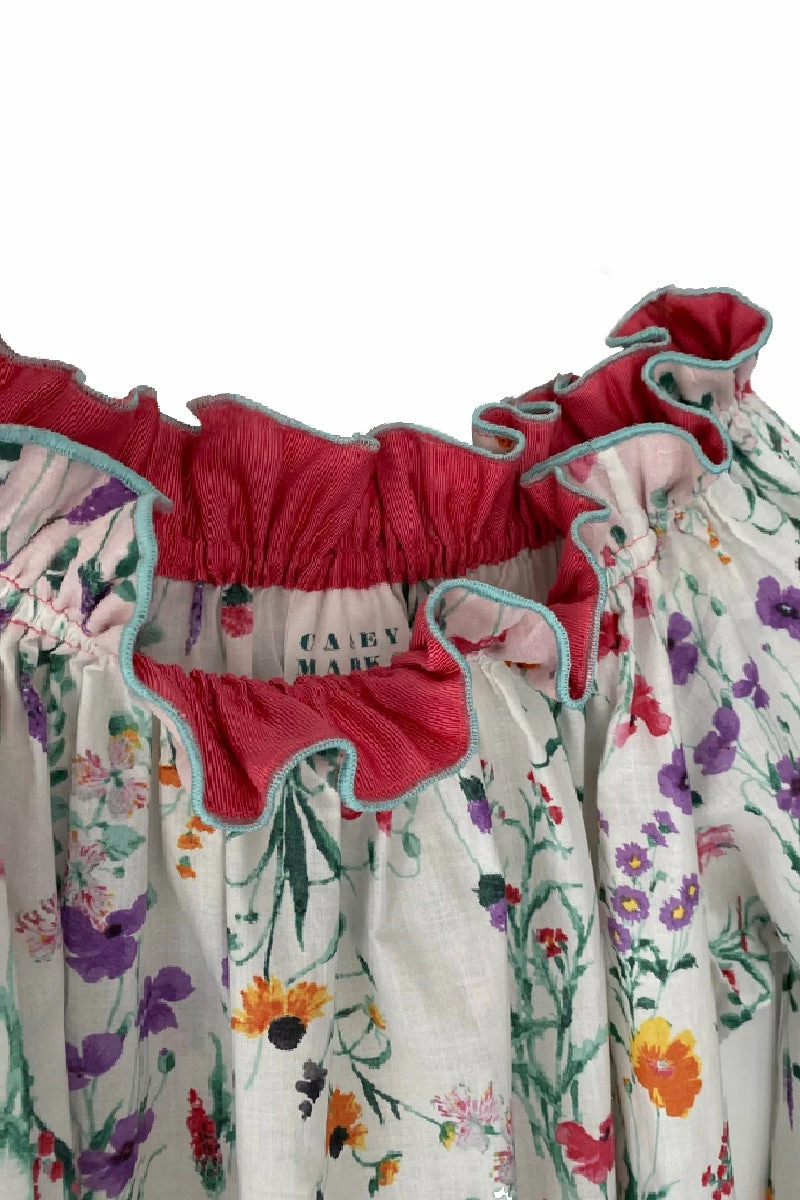 - Inner neck and wrist ruffles lined with pink grosgrain