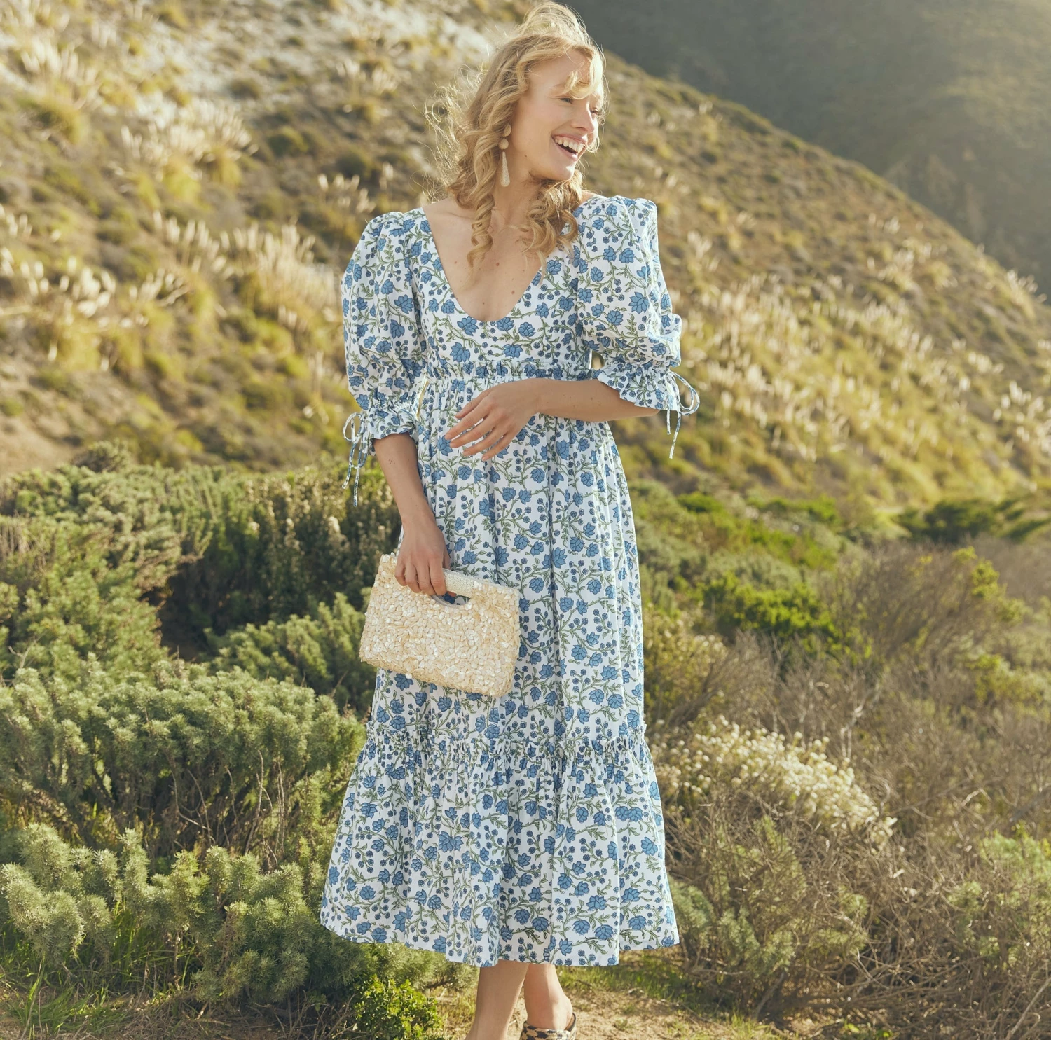 The Hayley is a blend of coastal California style andĀ retroĀ Americana. The fitted waist and deep v-neck in both front and back flatter the silhouette while allowing easy movement. The playful puff sleeves, with their adjustable self-tie closure, evoke a sense of carefree days spent under the sun. The ruffles at the bottom hem add a touch of whimsy