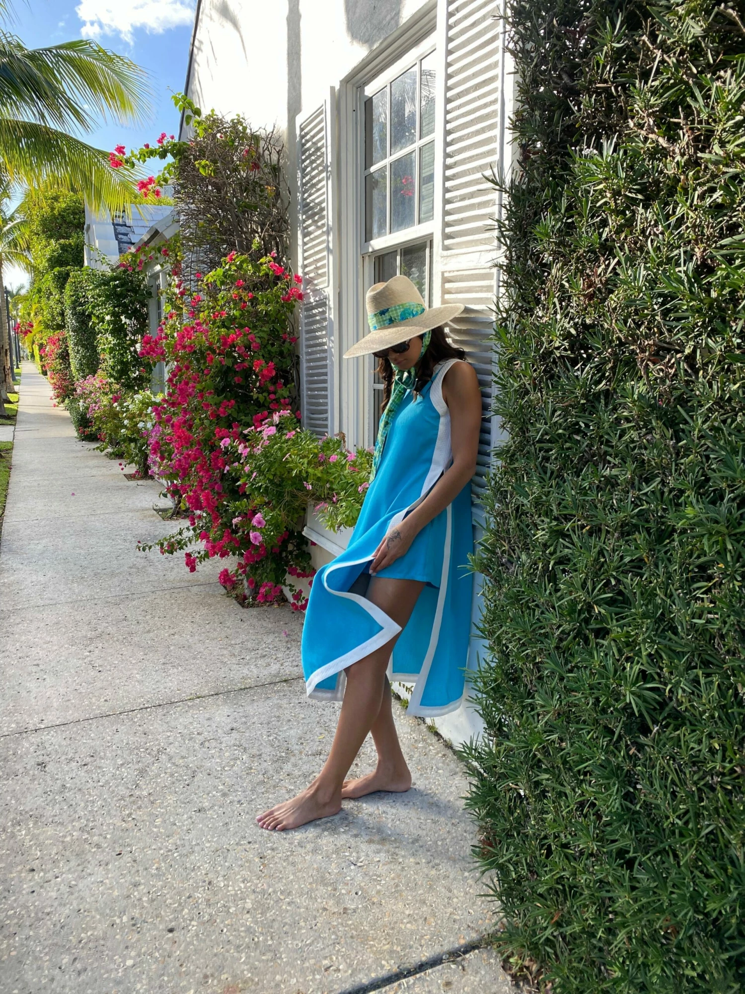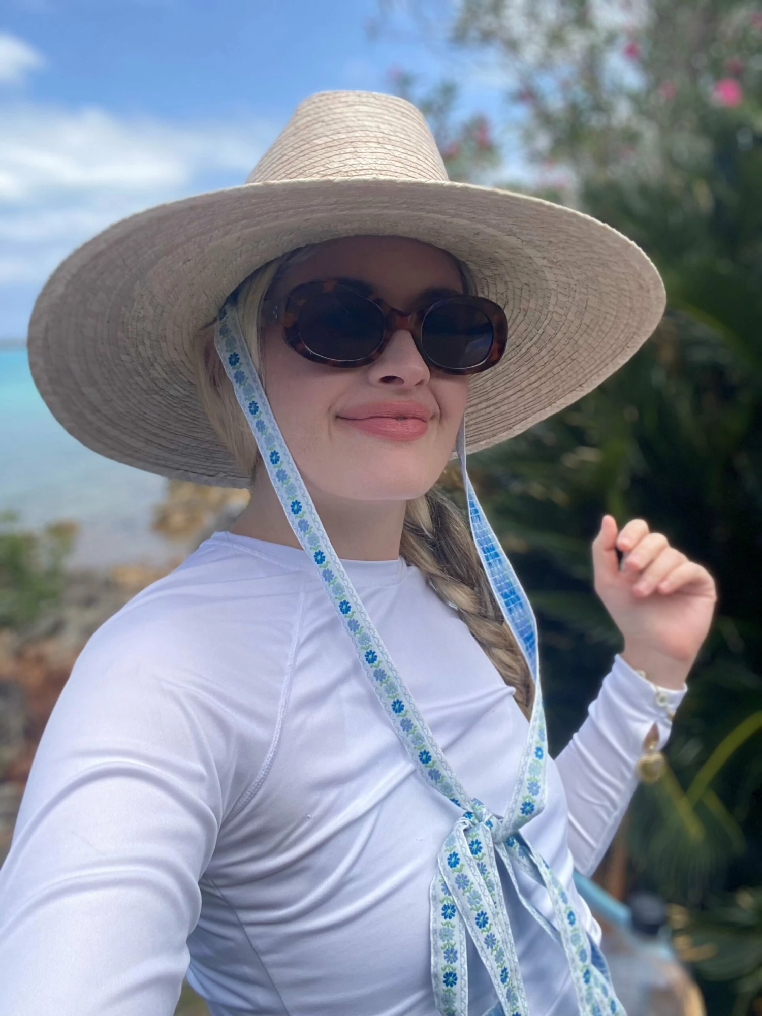 This sun hat ships woven with a cotton hat scarf that’s 3 inches wide and 75 inches long.