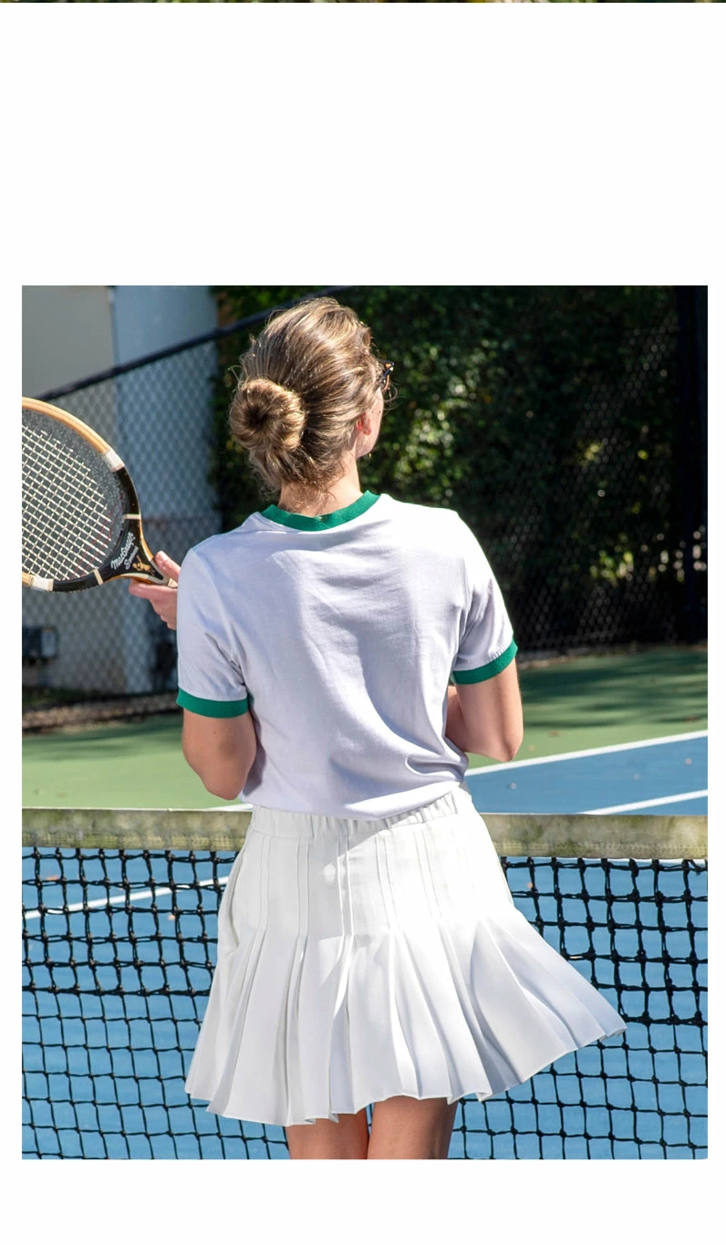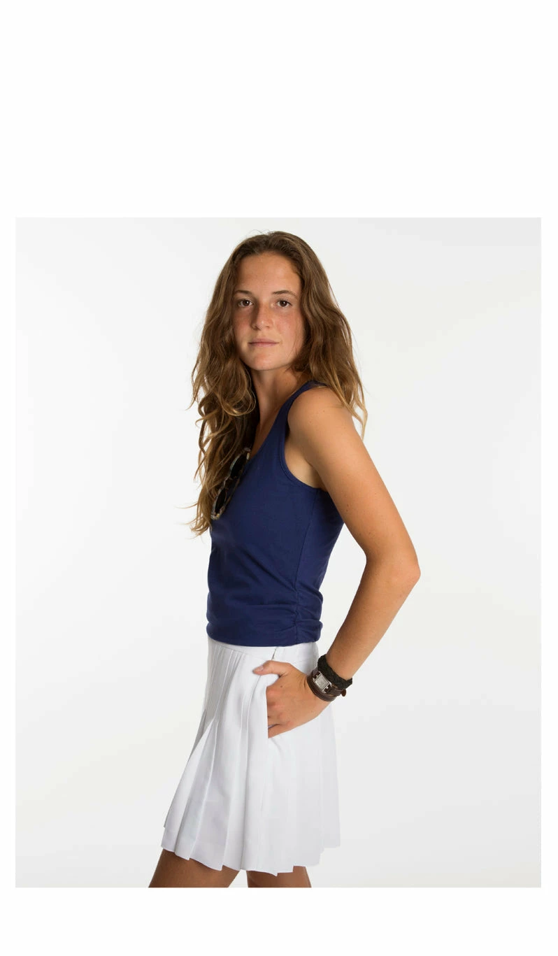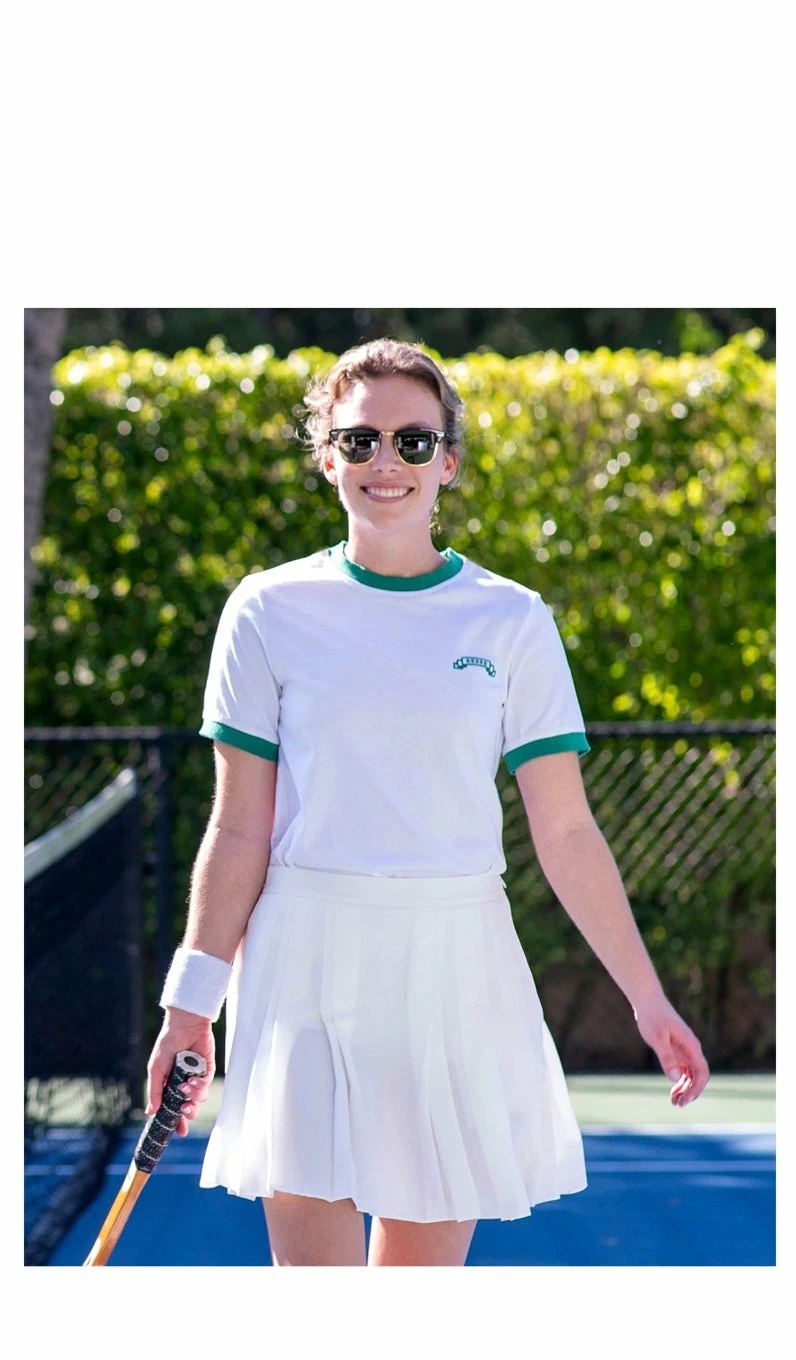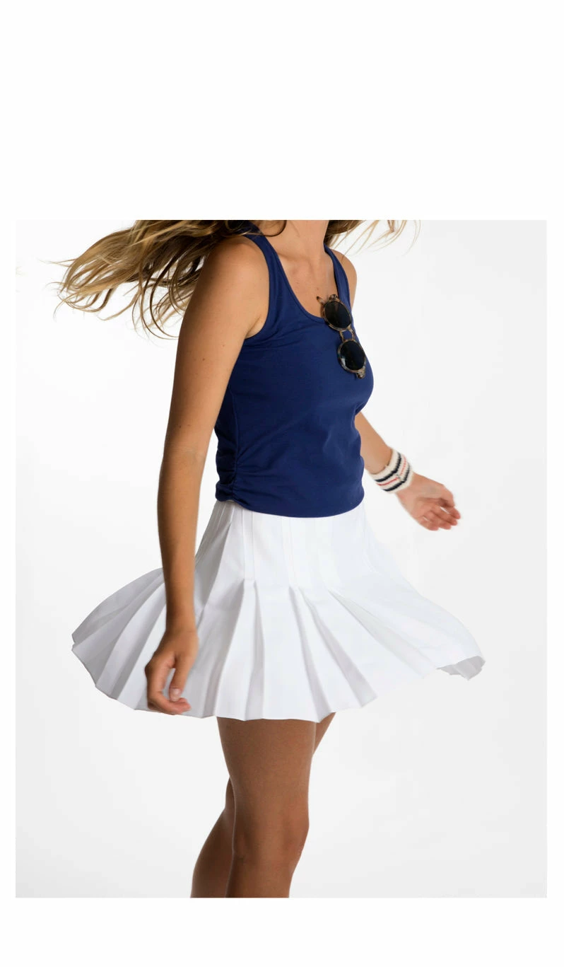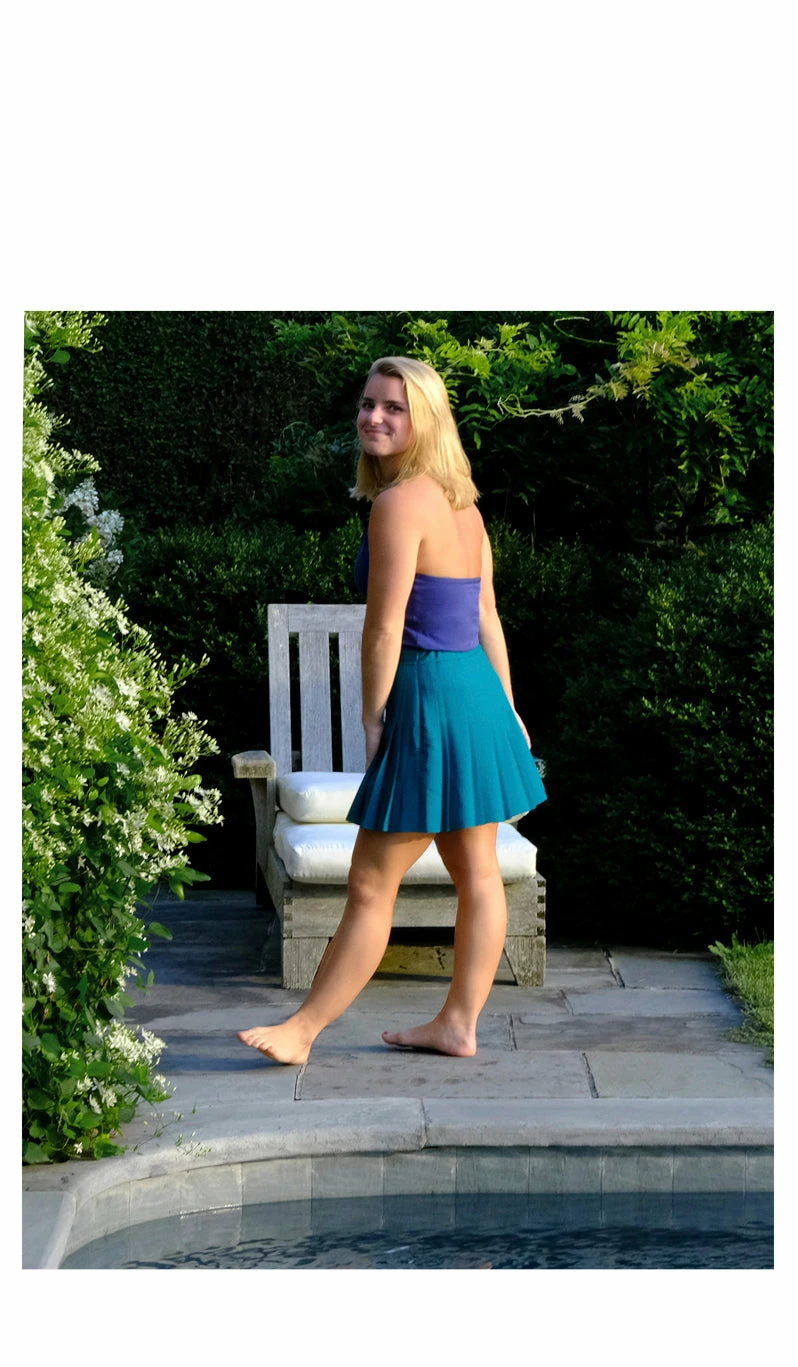 This classic style reminds us of our high school field hockey skirts. Crafted in our lightweight luxury crepe and tidy pleats it is certainly a refined version of the retro skirt with these luxury details and elegant fabric.