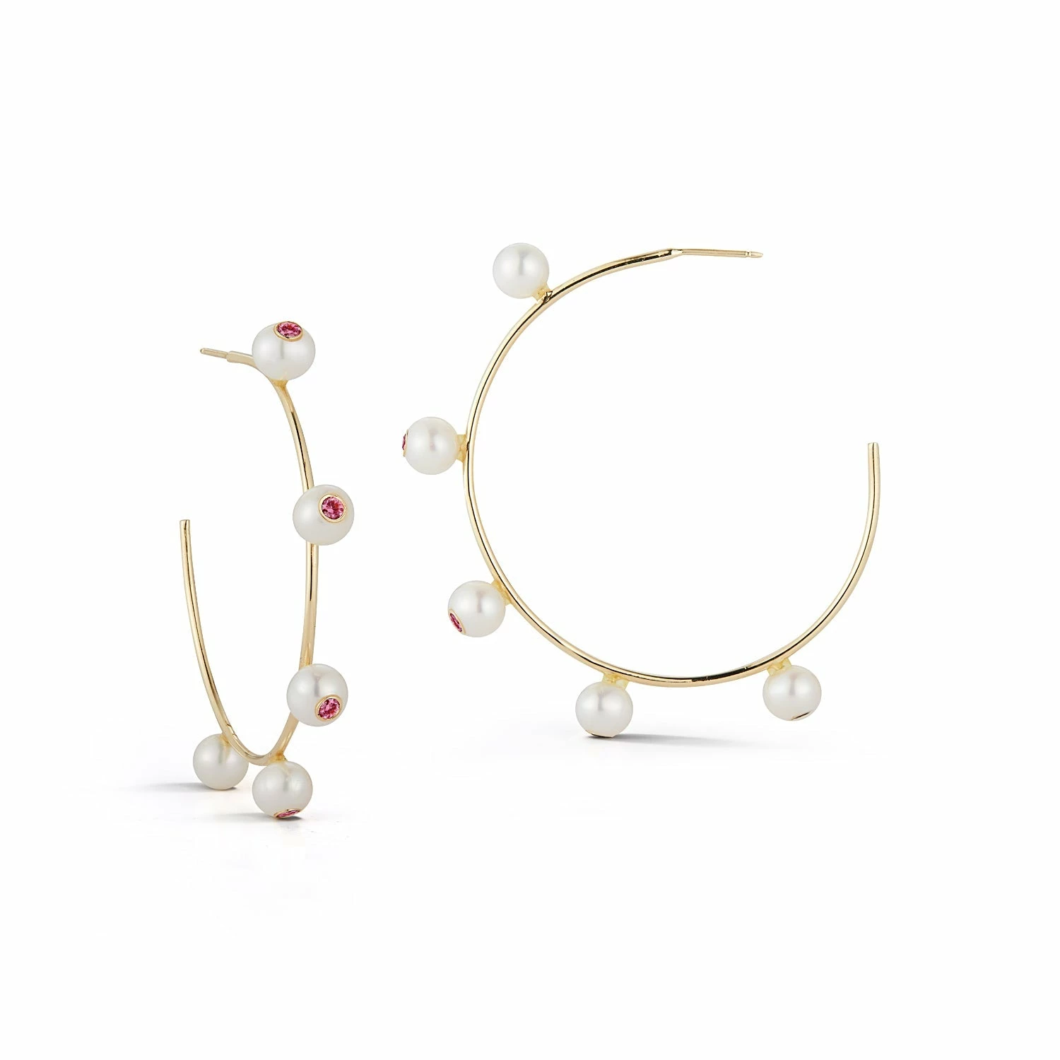 Turn heads in these fun statement hoops! Each pearl is set with a bezeled sapphire that catches the light and adds a splash of color. The 18k gold is super light, so you can make an impact without feeling weighed down.