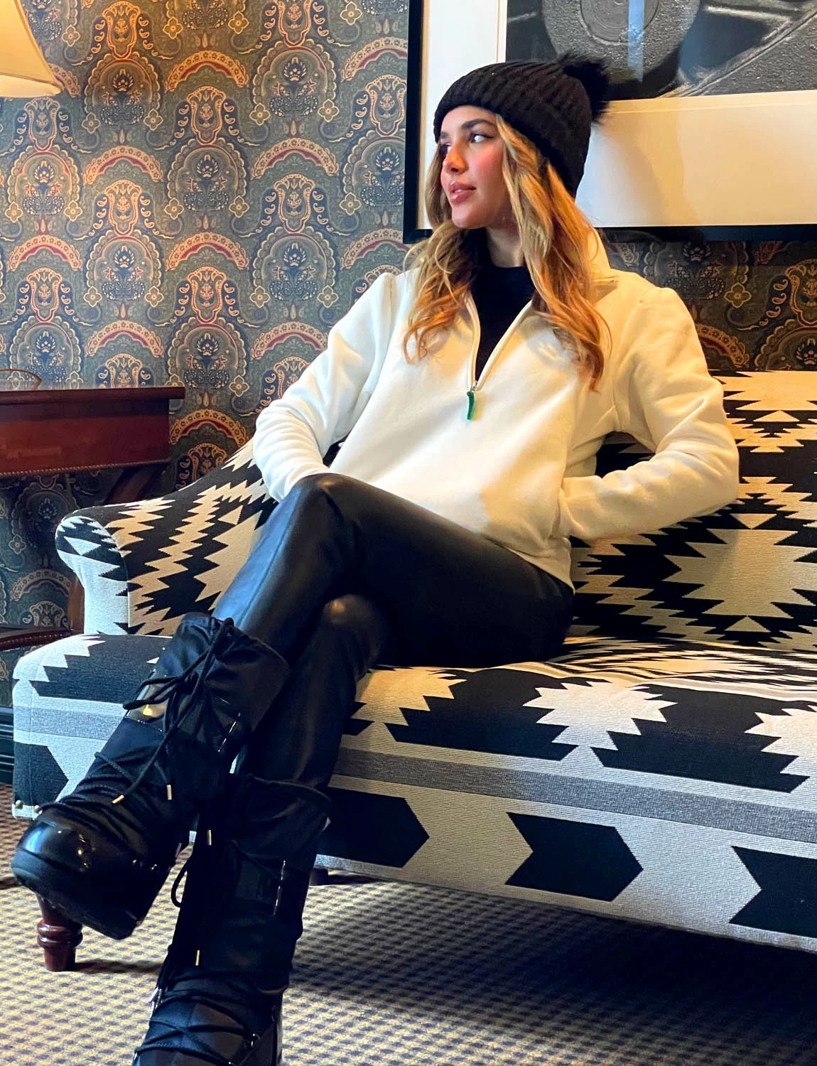 We have thought of all the luxury details. The zipper pull is velvet, so it’s not cold to the touch. The zipper tape is inlaid and concealed with piping to soften the edge of the metal teeth.