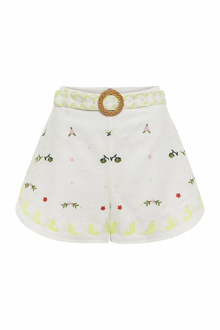 The Carly Linen Short is made of breathable linen fabric, featuring a natural rattan belt for a touch of summer style. This versatile piece pairs wonderfully with the James or Nicola blouse from our summer collection for a stylish, timeless look.