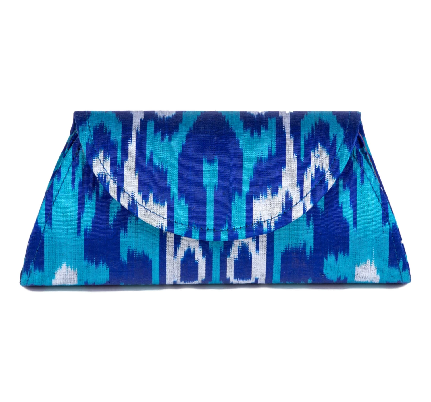 Hand-loomed and hand-dyed silk ikat, metal handle