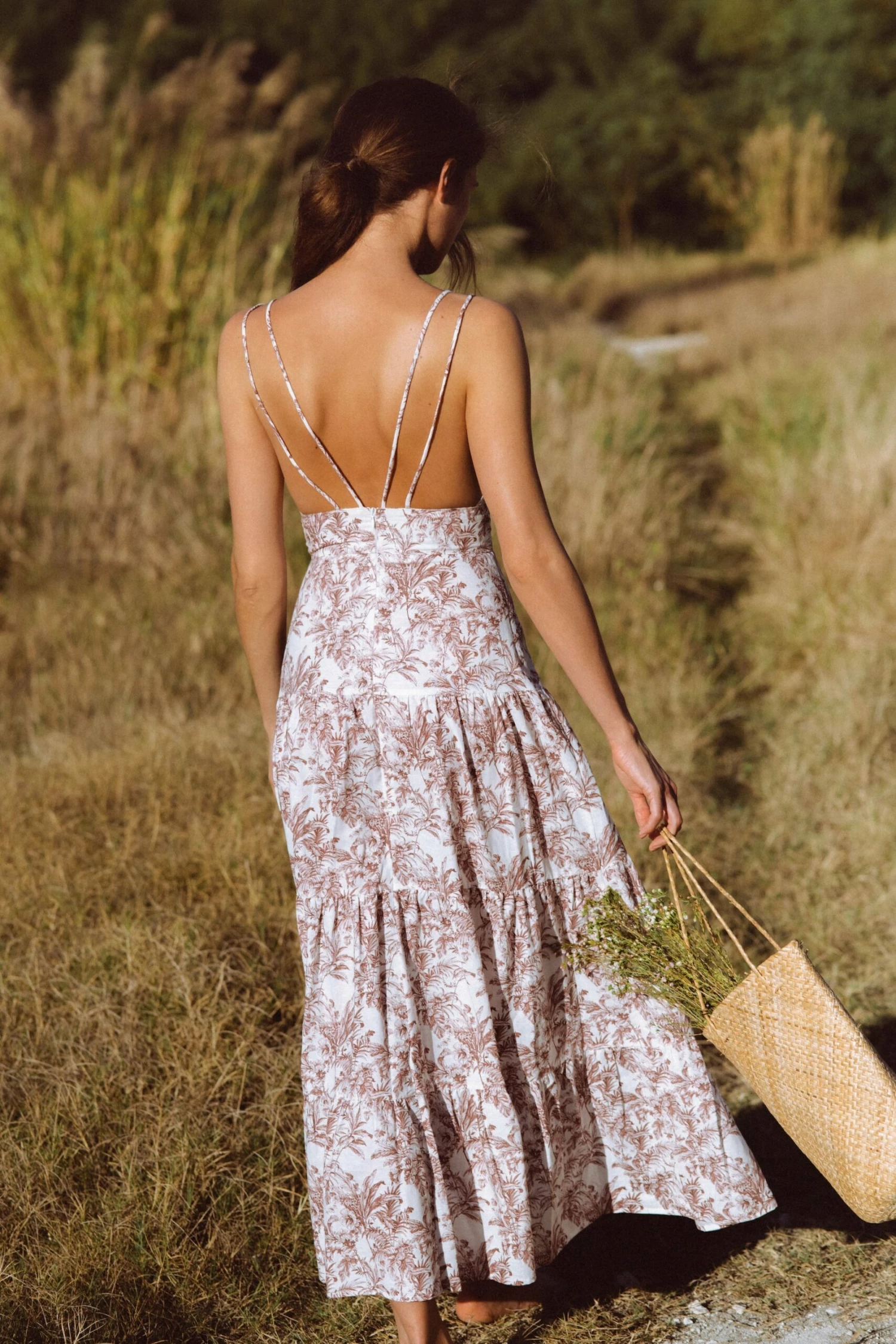 Introducing our new favorite maxi, the Paxos Dress. This piece is elegant, feminine, and effortless. Its low cut neck, strappy back detailing, cinched waist, and form fitting silhouette make it extremely flattering. Dress it up with your favorite heels or down with some sandals for a more casual look.