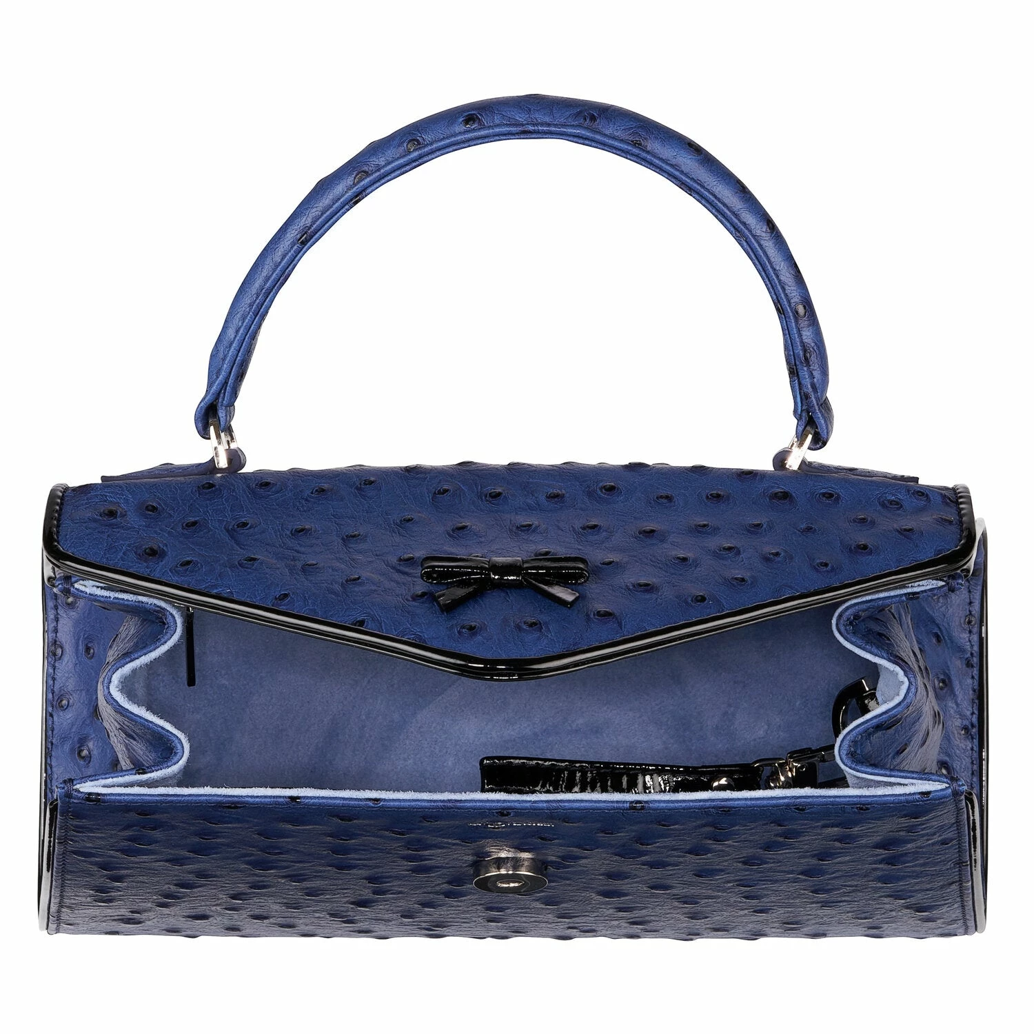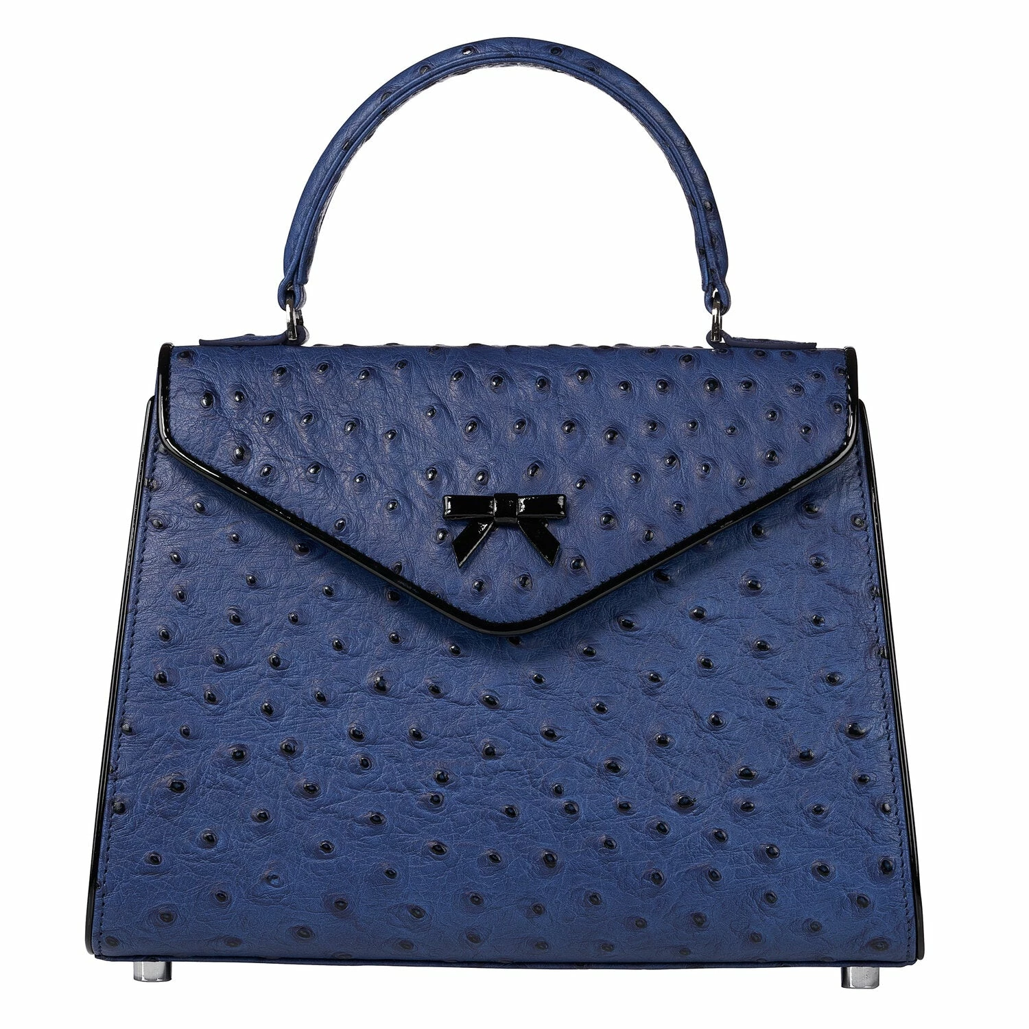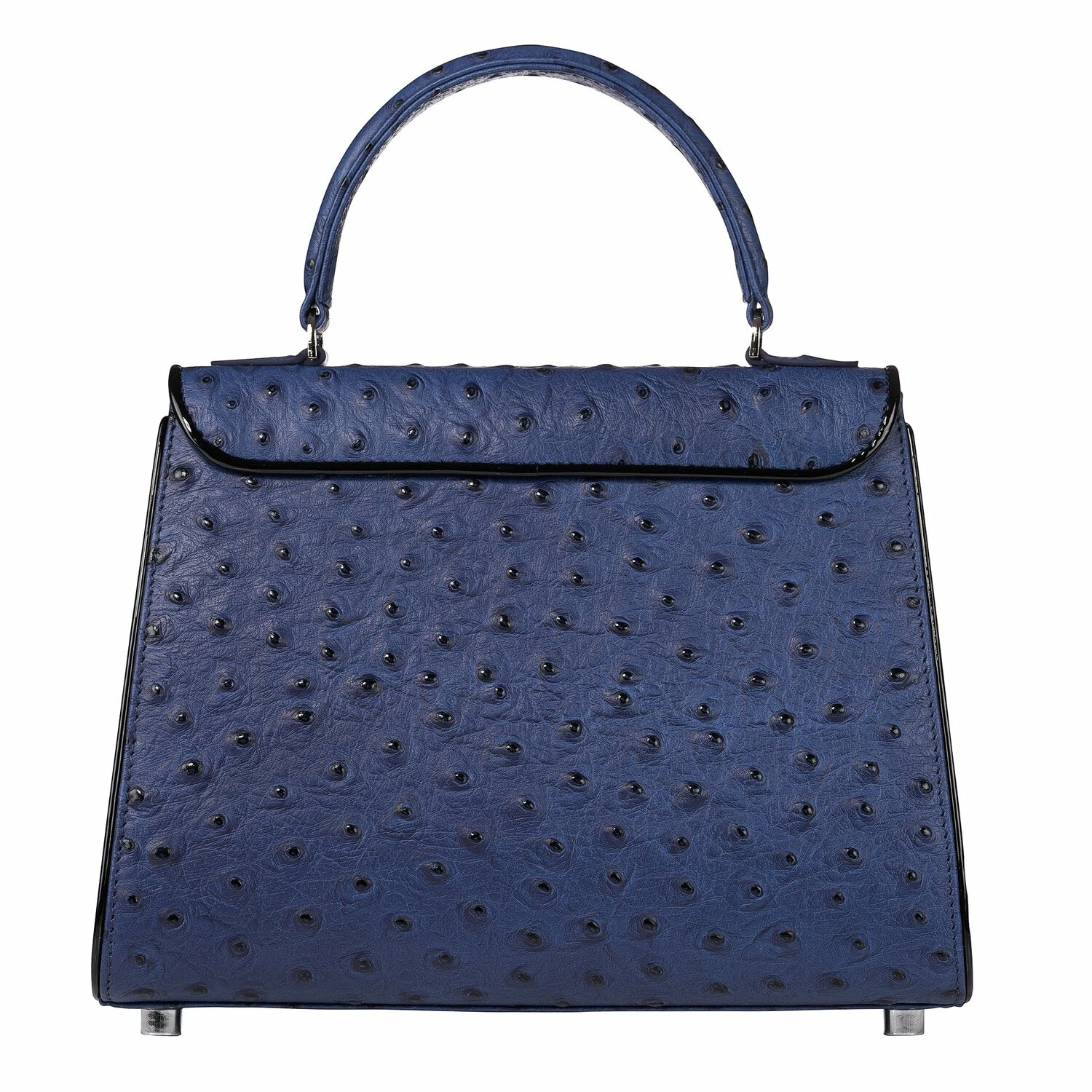 - Navy blue ostrich embossed leather original top handle belgian bag.