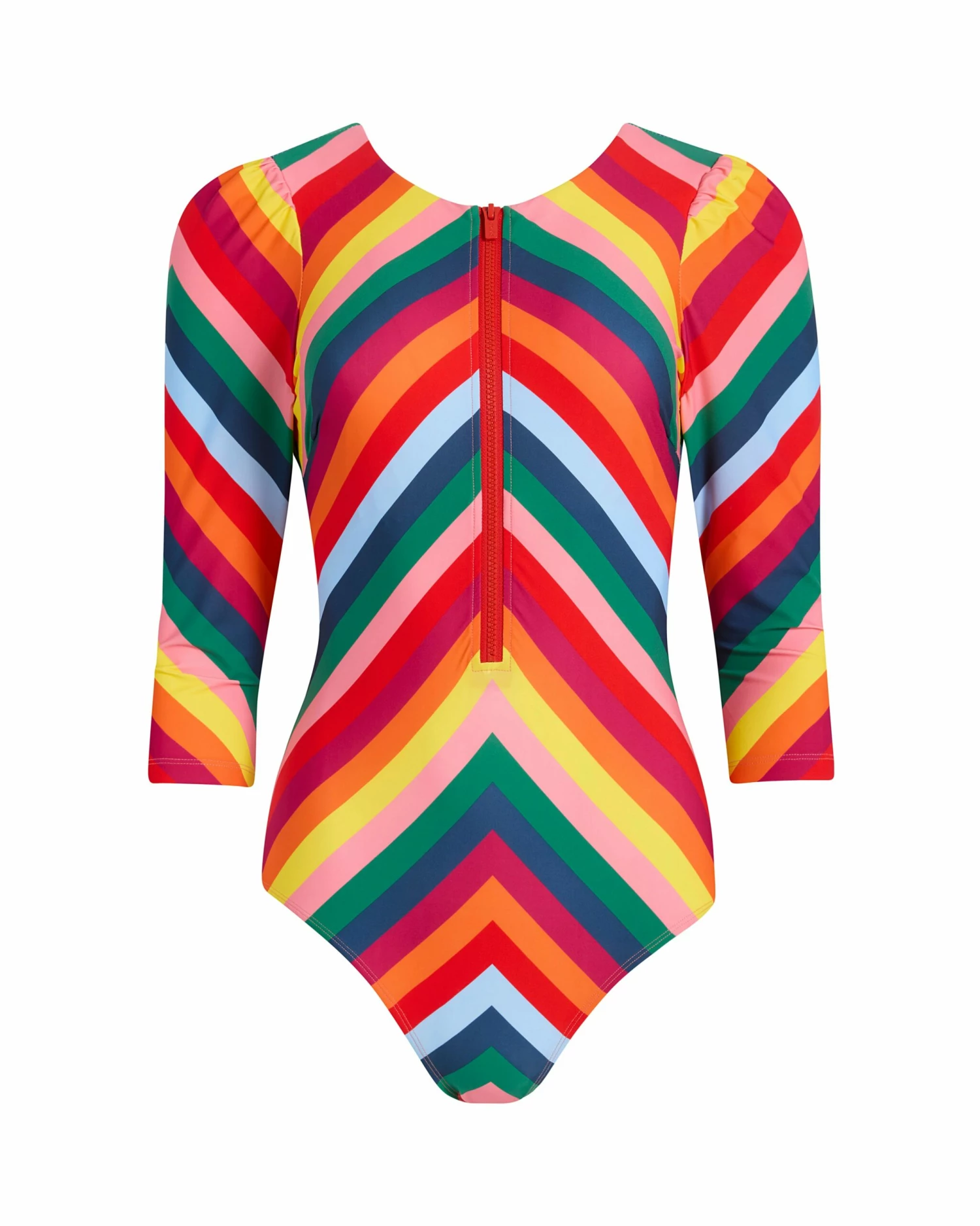 Cut in our luxury French compression fabric that targets key problem areas, this high-fashion suit pulls out all the stops. Puff sleeves give you stylish arm and sun coverage or play double duty as a top for after-pool drinks. The half-body zip gives you options to show off your swim bra (we recommend the scoop or triangle style), depending on your mood and company.