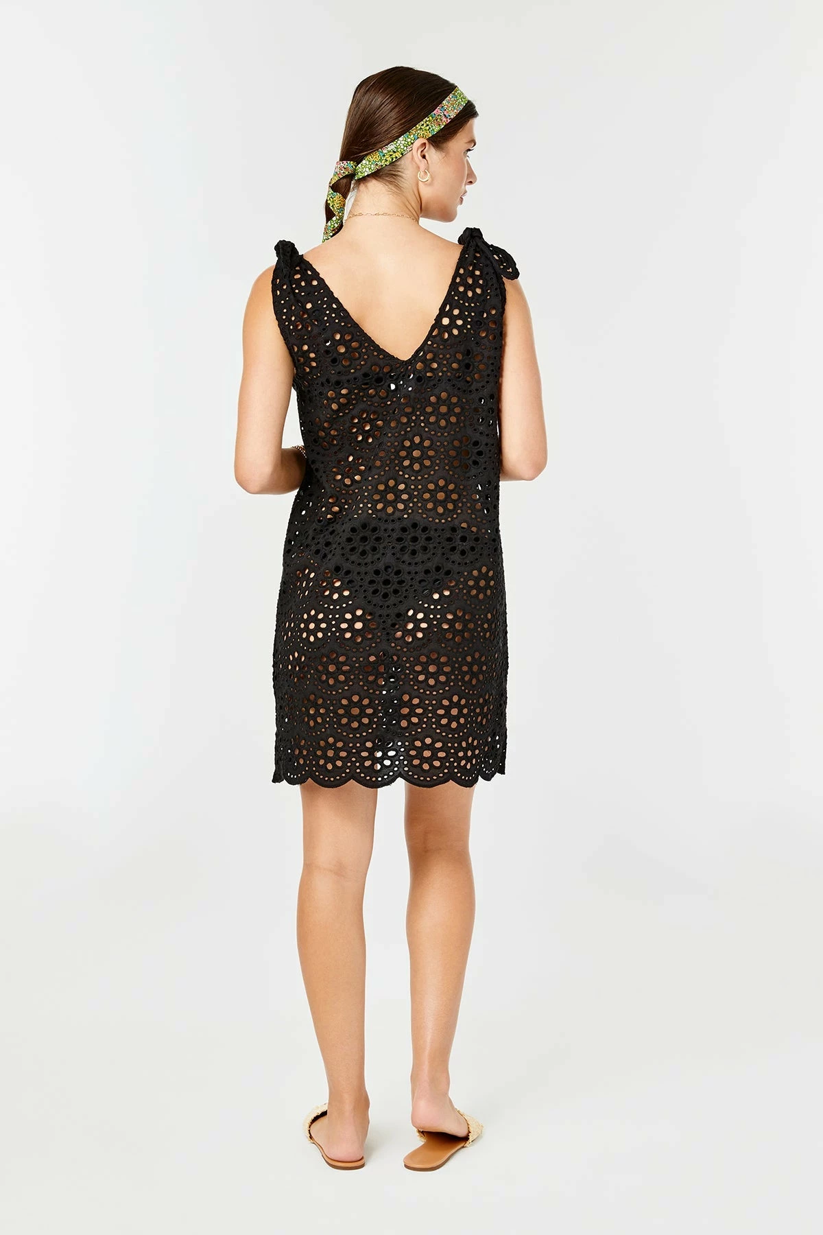 Return of one of our best selling coverups. Adjustable ties at shoulders. Scallop hem, finished with bias binding. 100% Cotton embroidered eyelet. Designed, dyed, and sewn in Los Angeles.